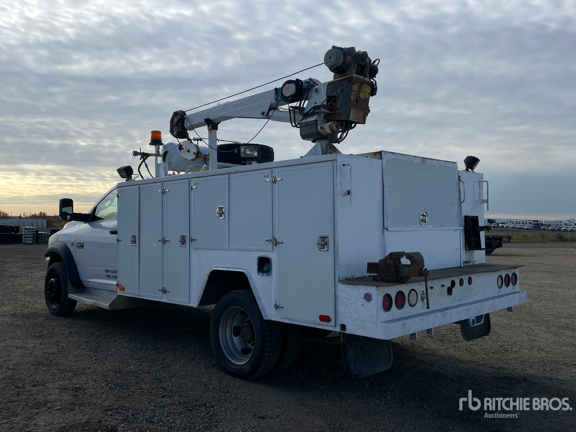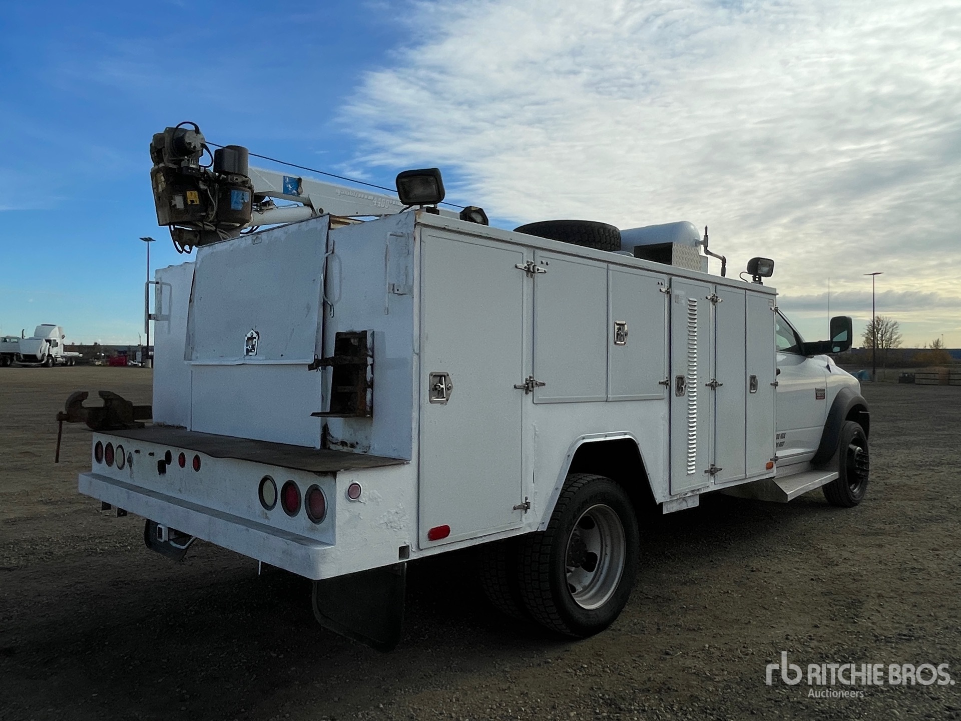 6 Cylinder 6.7 L Diesel Engine, 12143 Engine hrs, Automatic Transmission, 7000 lb Front Axle, 13500 lb Rears, 19500 lb GVWR, 225/70R19.5, Spring Suspension, 171 in Wheelbase, Ventures 11 ft Body, Cobra 4400 lb 3 Section Hydraulic Crane, Wired Remote Control