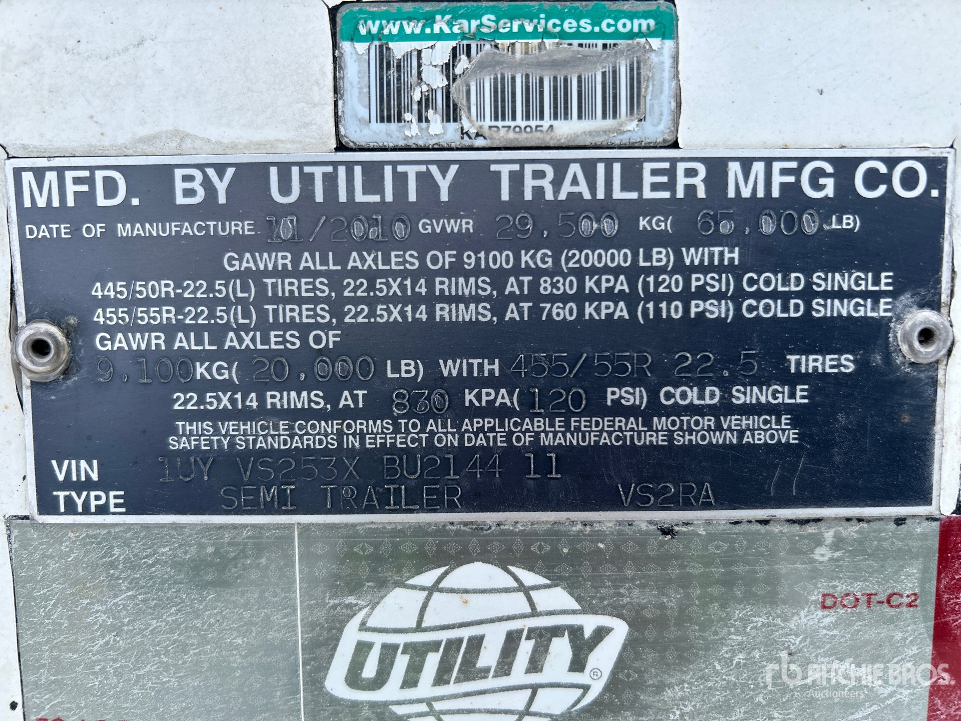 2010 Thermo King SB-210 Refrigeration Unit, 16291 Total Hours, Aluminum/Steel Combination Frame, Air Ride Sliding Suspension, Pintle Hitch, Side Skirts, Ducted Floor, Swing Door, 295/75R22.5 Tires 65000 lb GVWR