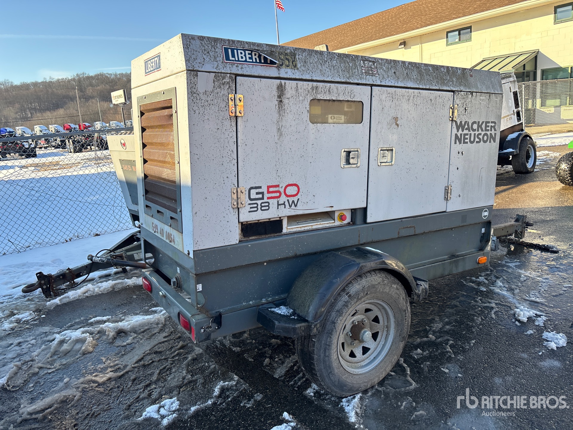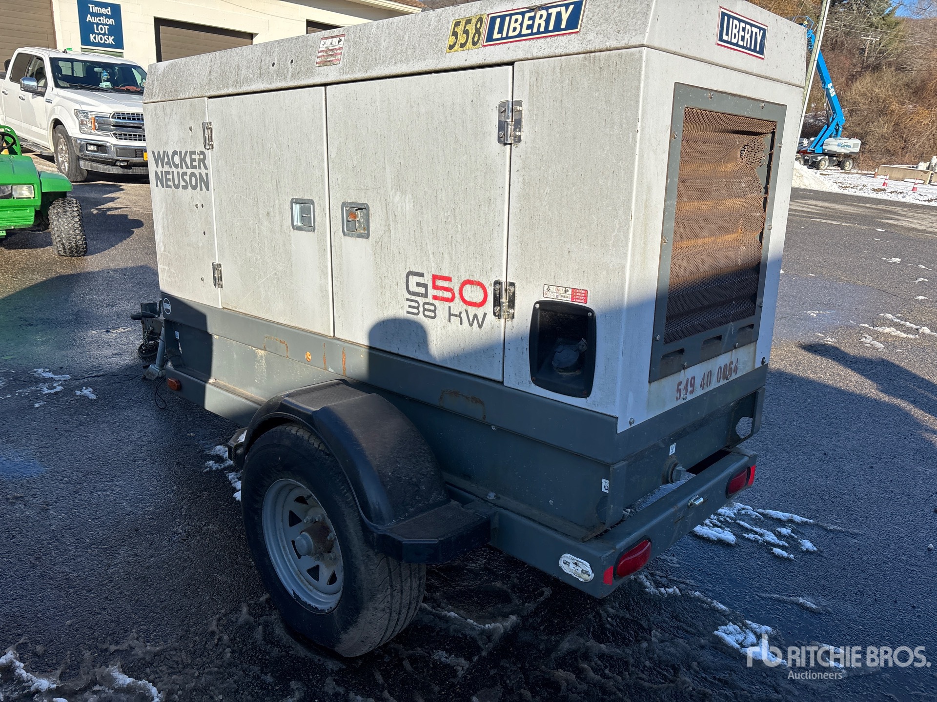 2011 US EPA Label, John Deere 4045TF280E 4 Cylinder 56 kW 4.5 L Diesel Engine, 48 kVA/38 kW Rated 3 Phase Output, 240 V / 480 V Rated Voltage, 32 kVA,/32 kW, Rated Single Phase Output, 120 V / 240 V Rated Voltage, 240 V & 120 V Receptacles, Sound Attenuated, Bottom Mounted Fuel Tank, Lunette Ring Carrier Trailer, Electric Brakes