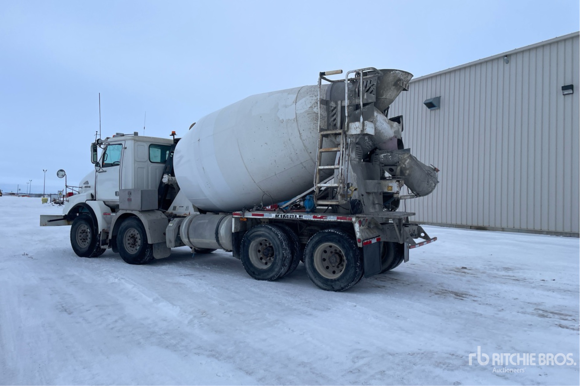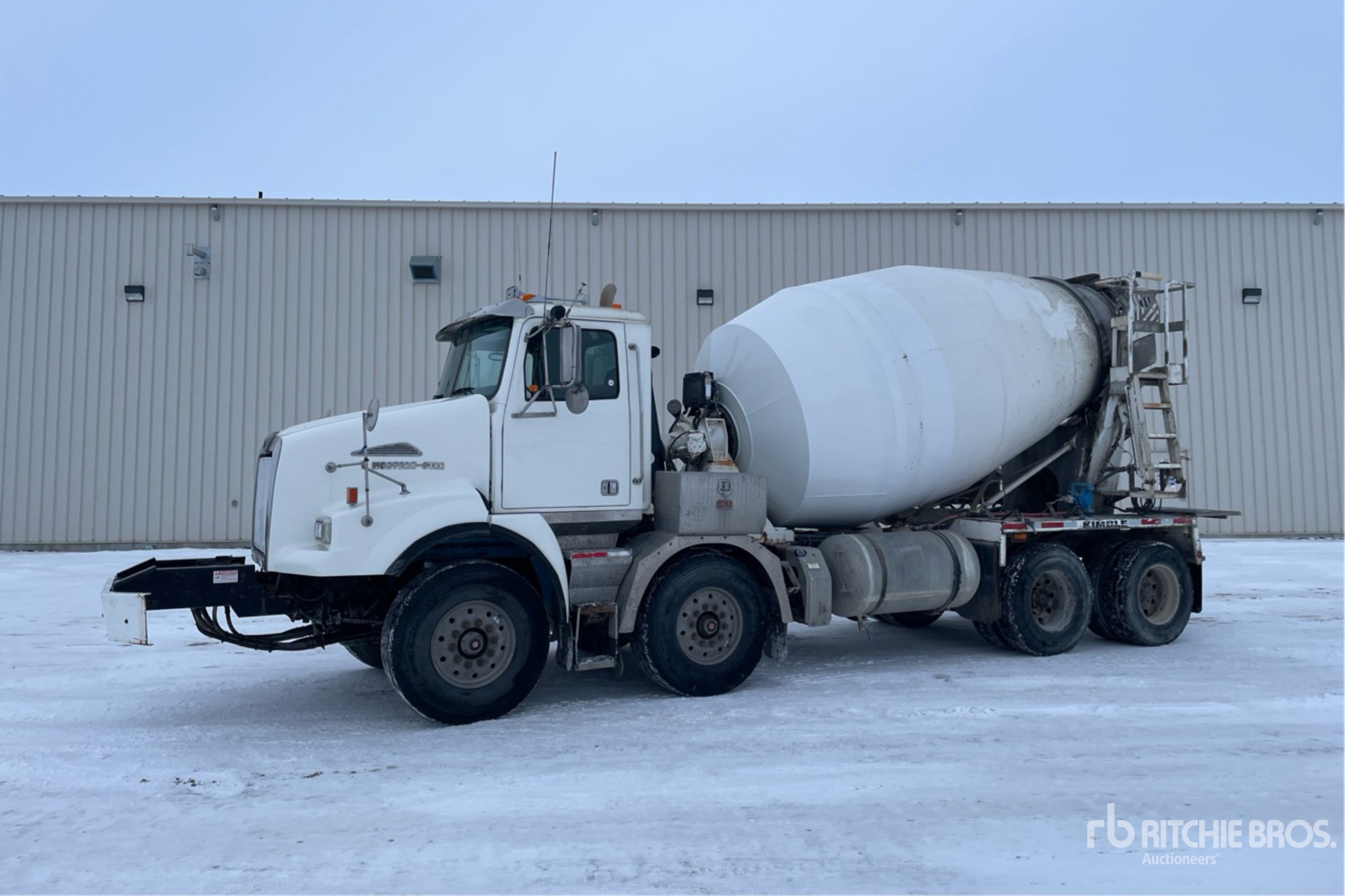 Detroit DD13 6 Cylinder 12.8 L Diesel Engine, 2010 US EPA Label, 15693.8 Engine hrs, Engine Brake, Eaton Fuller RTO-16909ALL 9LL Manual Transmission, Double Differential Locks, 40000 lb Front Axle, 46000 lb Rears, 86000 lb GVWR, Air Ride Cab, Aluminum Wheels, 425/65R22.5 Front Tires, 11R22.5 Rear Tires, Double Frame, Tuf Trac Rubber over Walking Beam Suspension, 200 in Wheelbase, Kimble K-1900 12 cyd Mixer Unit, 2 Removable Chutes, Remote Control w/Cord
