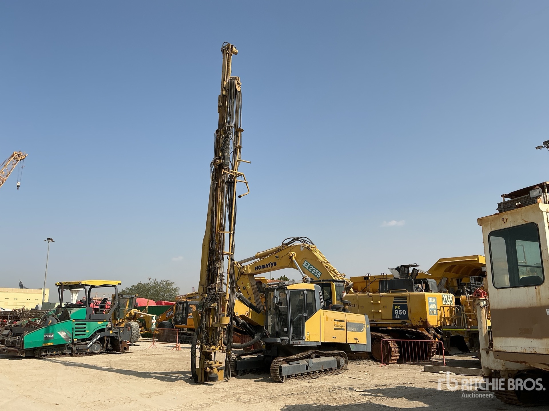 Enclosed Cab, Cat 6 Cylinder Diesel Engine, ATLAS COPCO 1900 mm Boom, 12300 mm Mast, Dust Collector, ( 3 ) 90 mm Drill Rods, 330 mm Triple Grouser Track Shoes