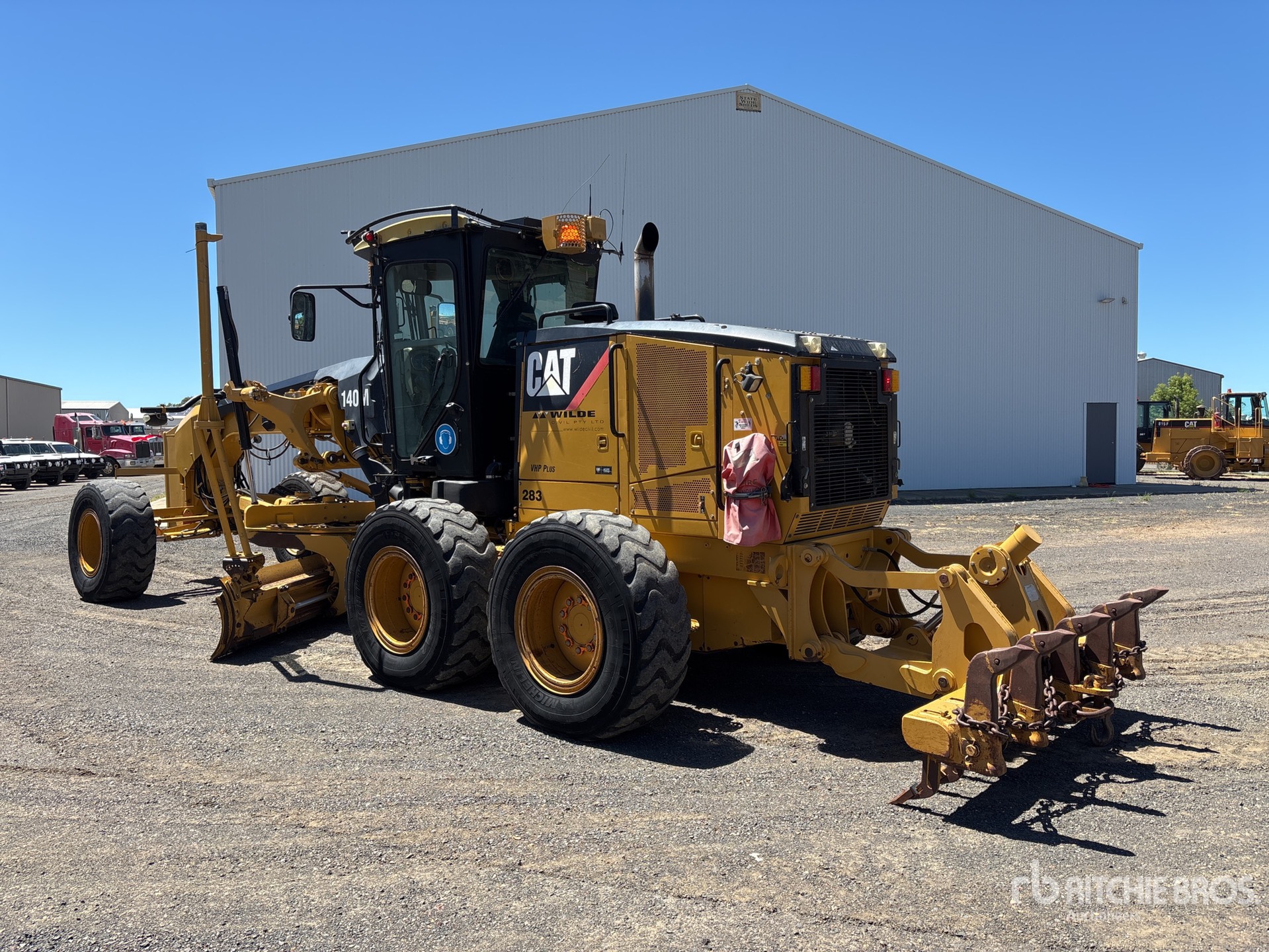 Enclosed Cab, Air Conditioner, Joystick Steering, Pre-Wired for Grade Control, E-Stops, 14 ft / 4.27 m Moldboard, Push Block, Accumulators, Combination Ripper/Scarifier, 14.00-24 Tires, equipment-from-wilde-civil