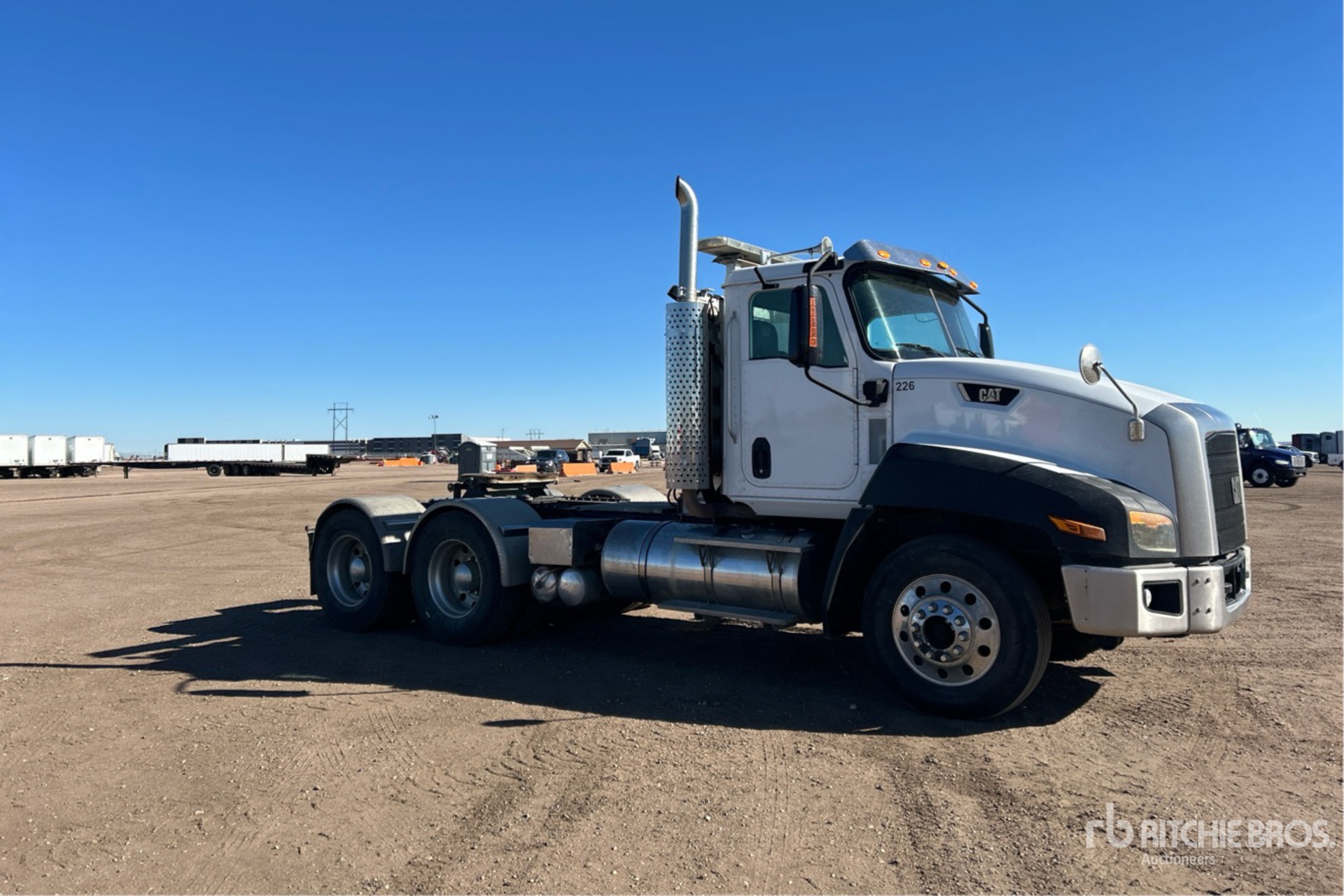 Cat CT13 6 Cylinder 12.4 L Diesel 475 hp Engine, 2011 US EPA Label, 9667 Engine hrs, Engine Brake, Eaton Fuller 13-Speed Manual Transmission, Double Differential Locks, Aluminum Wheels, 11R24.5, Hendrickson Air Ride Suspension, 191 in Wheelbase, PTO, Wet Kit, Air Sliding 5th Wheel, Dual Fuel Tanks