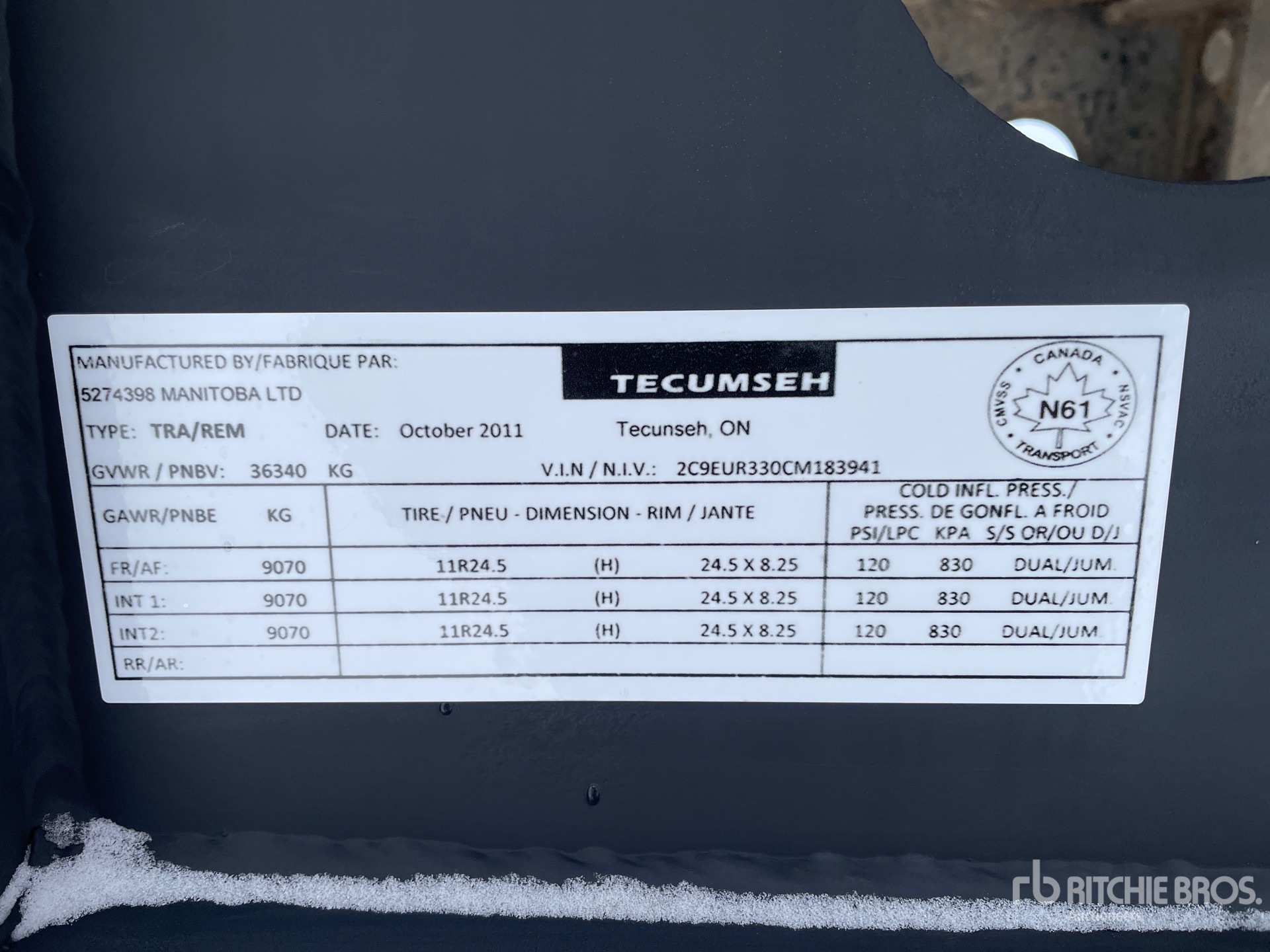 Air Ride Suspension, Air Brakes, 33 ft Body, 58 in Side Walls, Steel Body, Manual Roll Tarp, Box Liner, Aluminum Wheels, 11R24.5 Tires, 36340 lb GVWR, Complete-Retirement-Dispersal-for-K-McIntosh-Sons-Construction-Supply-Ltd