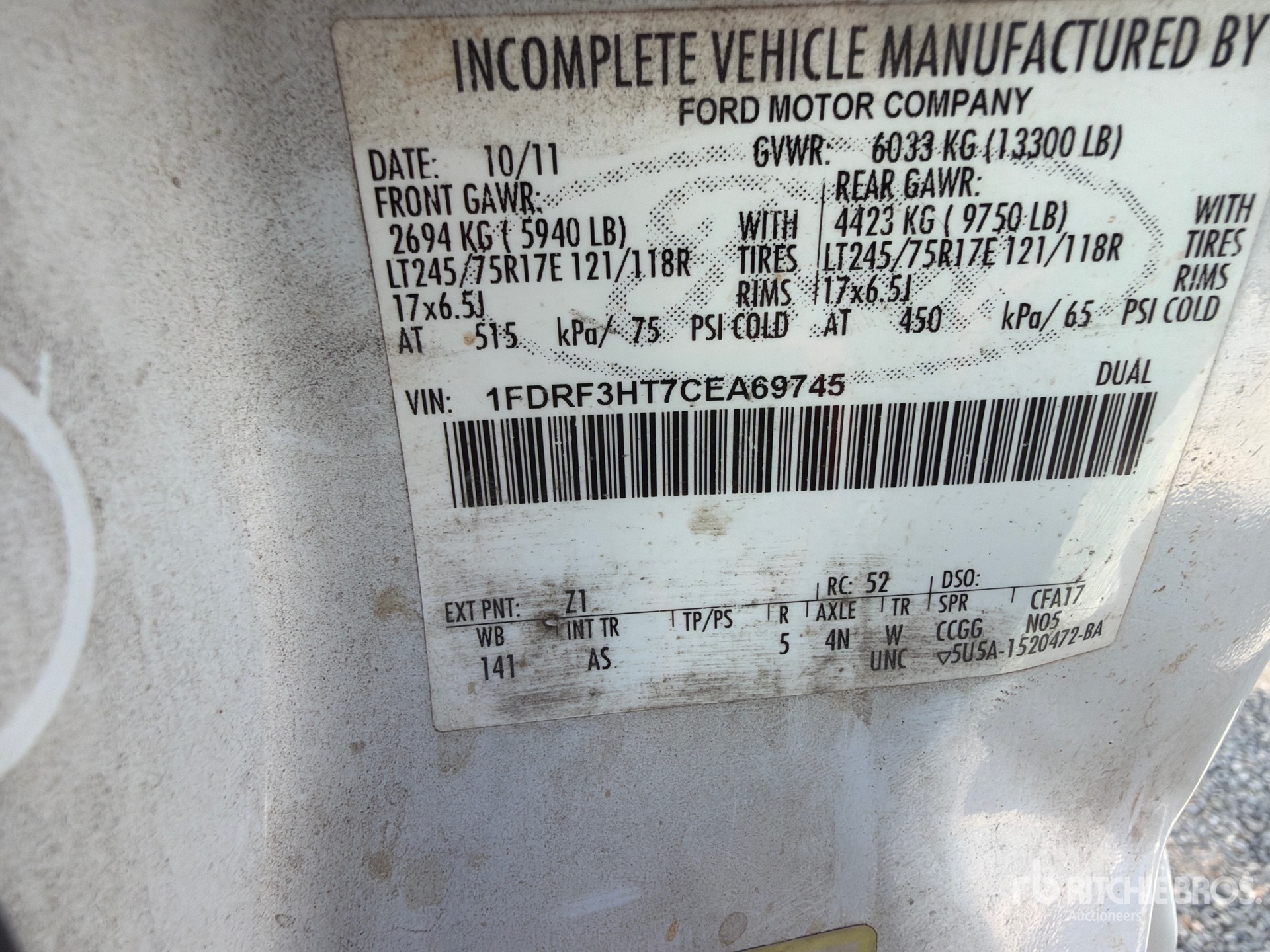 6.7 L V8 Diesel Engine, 2011 US EPA Label, Automatic Transmission, Air Conditioner, Power Windows, Dual Rear Wheel, 13300 lb GVWR, 245/75R17 Tires