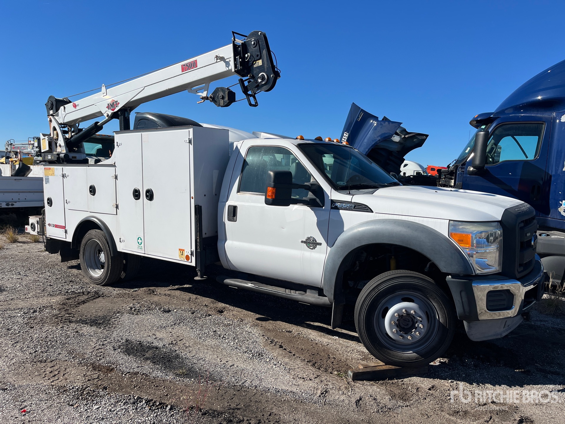 V8 6.7 L Diesel Engine, 2012 US EPA Label, Automatic Transmission, 6500 lb Front Axle, 14706 lb Rears, 19500 lb GVWR, 225/70R19.5, Spring Suspension, 165 in Wheelbase, PTO, 11 ft Body, IMT 7500 7500 lb 3 Section Crane