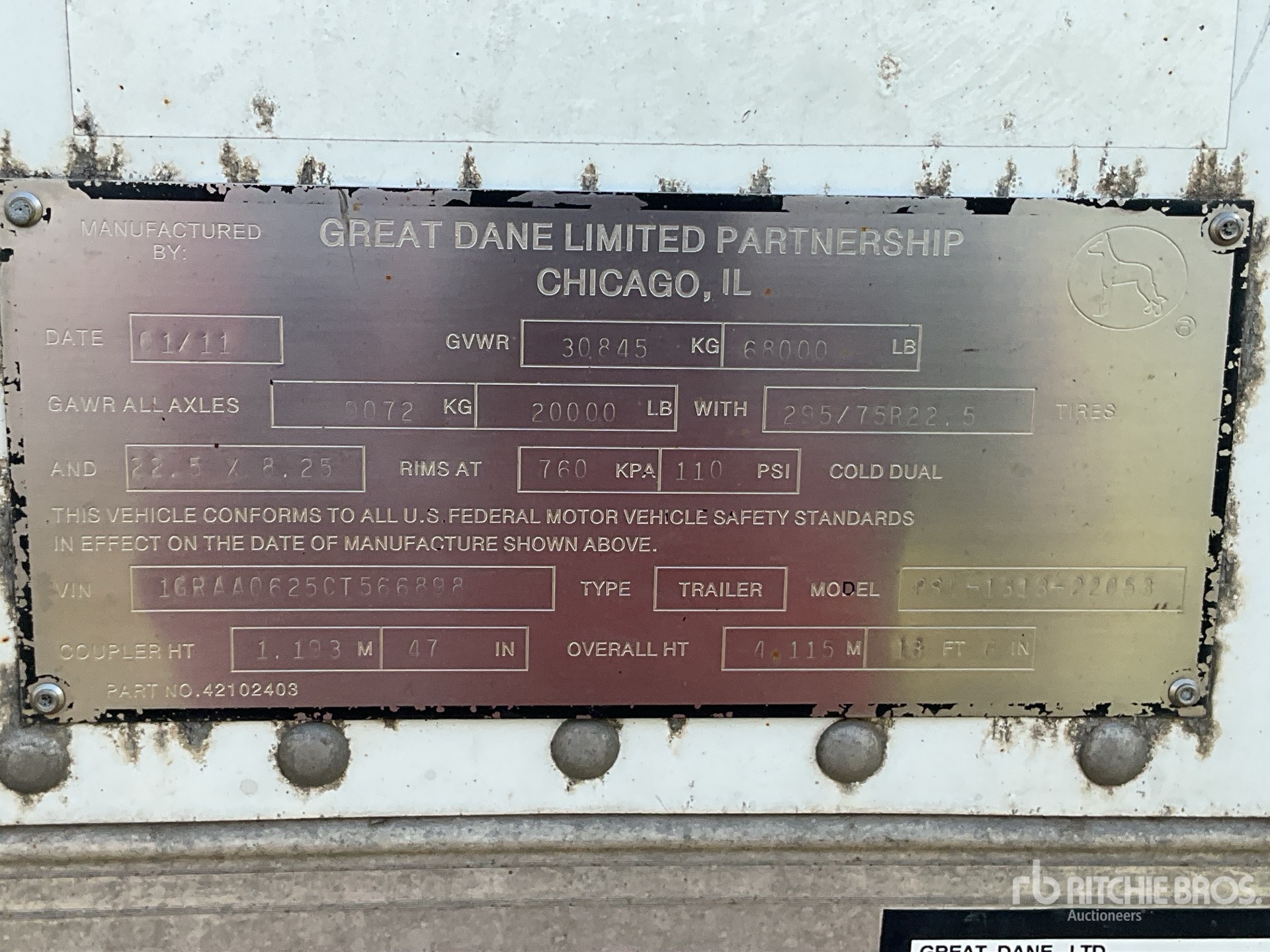 The detailed equipment information is limited in scope, and Ritchie Bros. Auctioneers has not inspected any aspects or components of the equipment other than those expressly set forth herein. Unless expressly stated, we make no representations or warranties, express or implied, concerning the equipment or its components, including without limitation any representations or warranties concerning functionality, conformity or compliance with any safety standard or requirement of any applicable authority or regulatory body, fitness for any particular purpose, or merchantability. You are strongly advised to perform your own detailed inspection of the equipment prior to bidding.