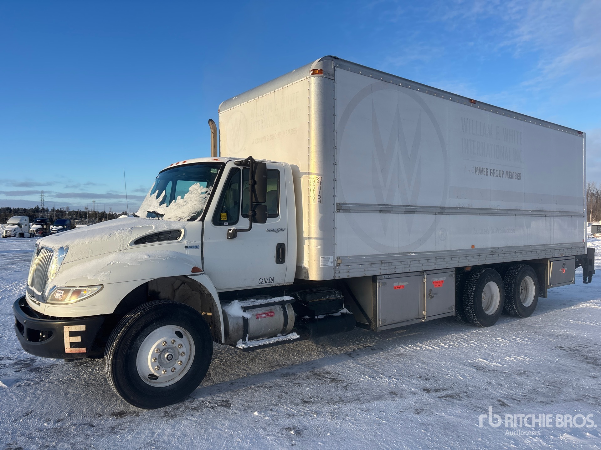Located in Lane 15 Spot 50, 6 Cylinder 7.6 L Diesel Engine, 96 Engine hrs, Engine Brake, Eaton Fuller 10-Speed Manual Transmission, 12000 lb Front Axle, 40000 lb Rears, 52000 lb GVWR, Air Ride Cab, 11R22.5, Air Ride Suspension, 258 in Wheelbase, Multi vans 26 ft x 102 in Wide x 102 in High Body, Curbside Door, Walk-Up Ramp, Liftgate