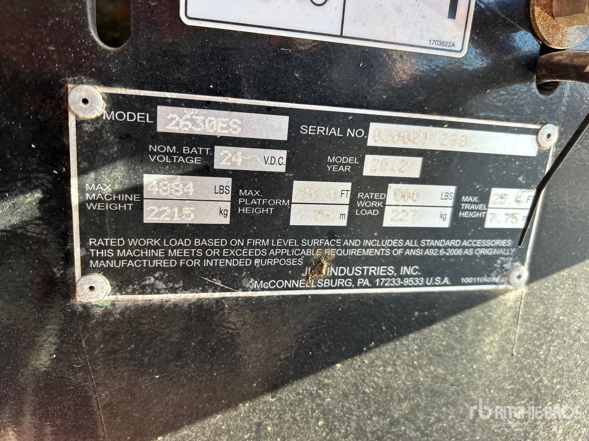 The detailed equipment information is limited in scope, and Ritchie Bros. Auctioneers has not inspected any aspects or components of the equipment other than those expressly set forth herein. Unless expressly stated, we make no representations or warranties, express or implied, concerning the equipment or its components, including without limitation any representations or warranties concerning functionality, conformity or compliance with any safety standard or requirement of any applicable authority or regulatory body, fitness for any particular purpose, or merchantability. You are strongly advised to perform your own detailed inspection of the equipment prior to bidding.
