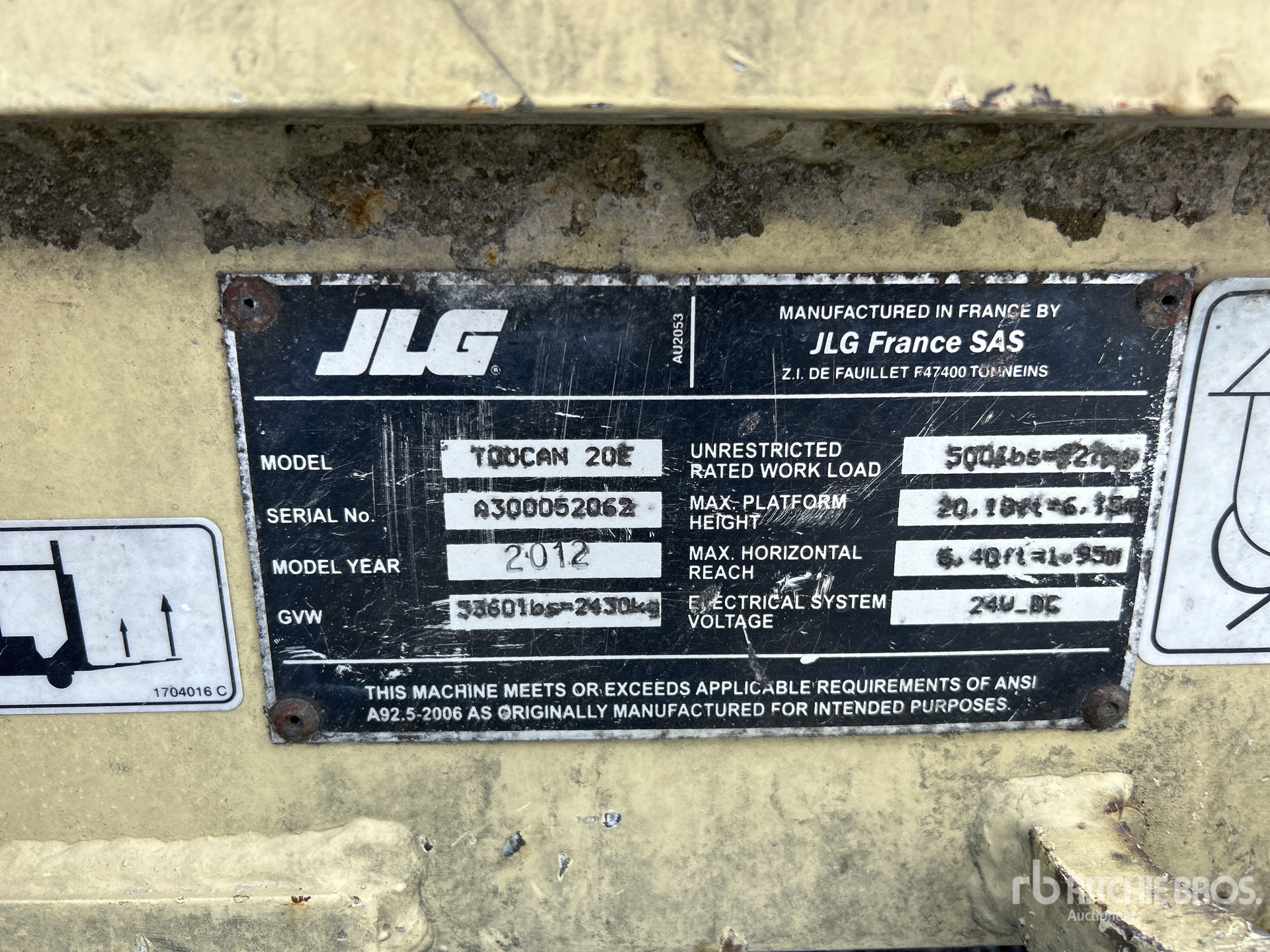 A qualified Ritchie Bros. employee collected detailed equipment information and performed functional tests on the key components of this asset. You, or a proxy, may also inspect any items on site prior to bidding on auction day.
