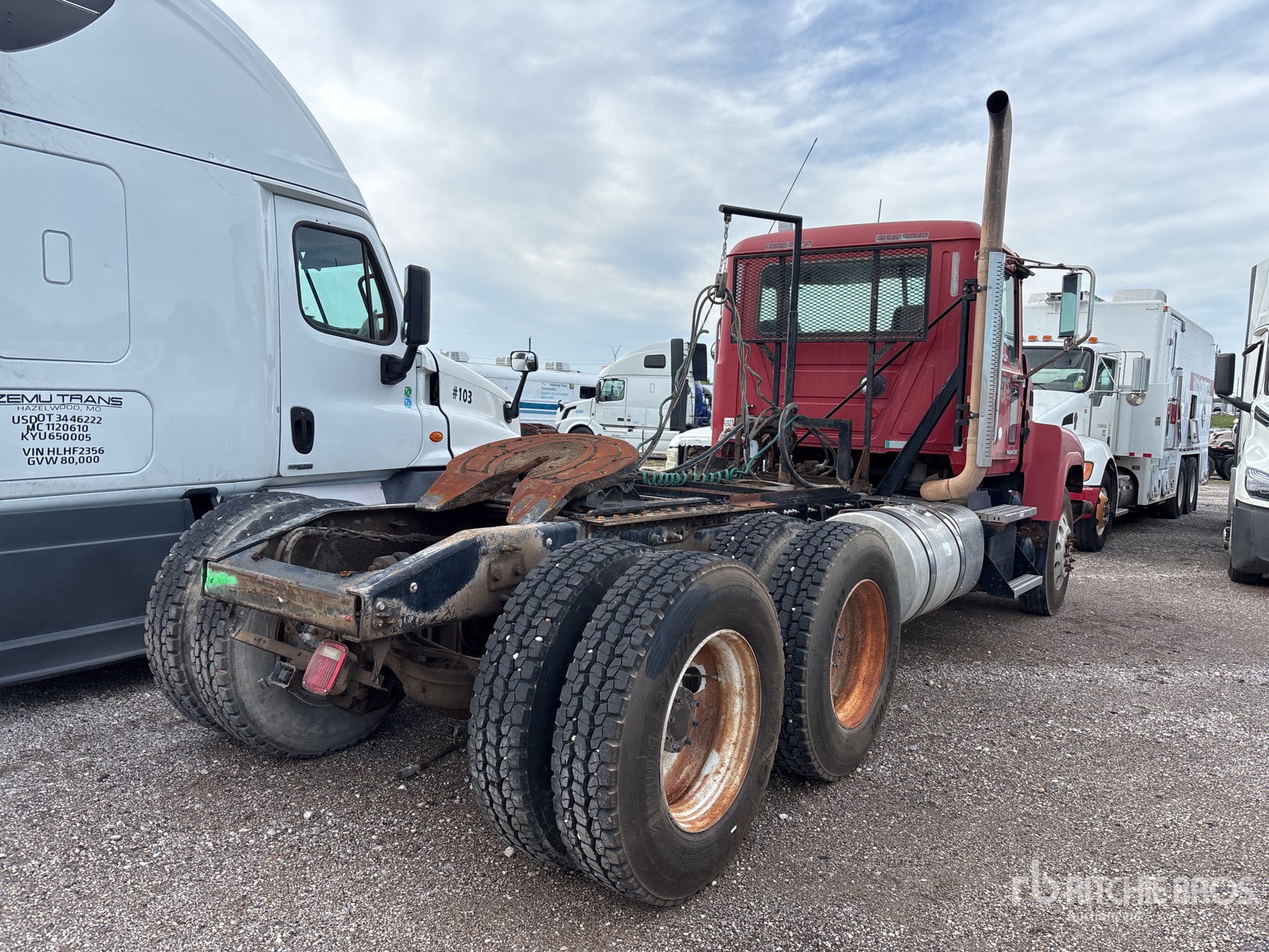 Mack MP8 415 hp Engine, 2011 US EPA Label, Eaton Fuller 13-Speed Manual Transmission, 14320 lb Front Axle, 44000 lb Rears, 58320 lb GVWR, Engine Brake, 208 in Wheelbase, Walking Beam Suspension, Aluminum Front Wheels, 11R24.5, Hydraulic System, Air Sliding 5th Wheel, Dual Fuel Tanks