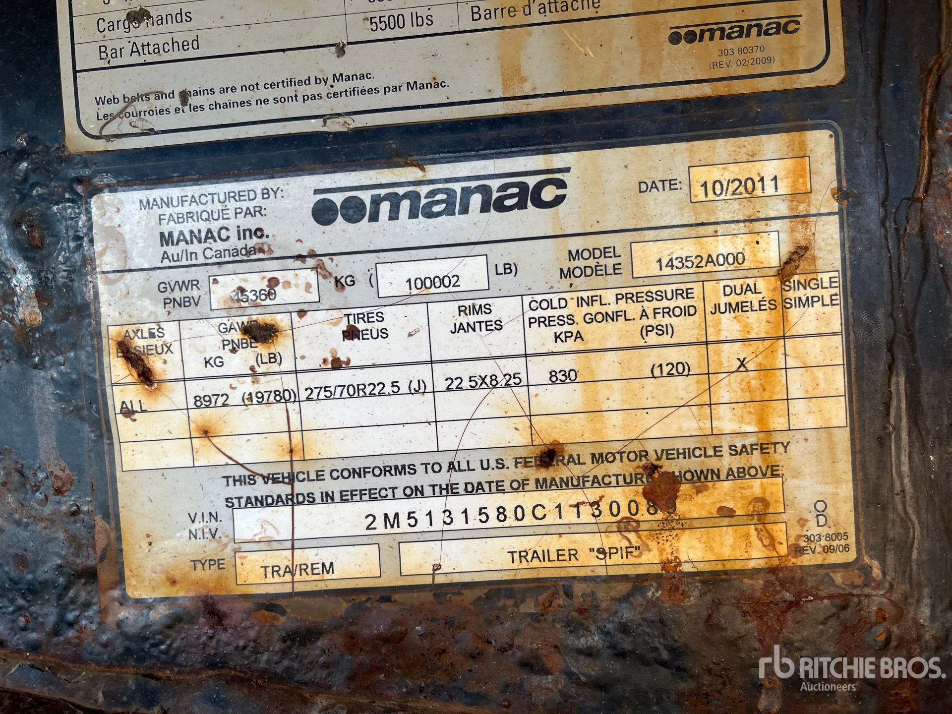 The detailed equipment information is limited in scope, and Ritchie Bros. Auctioneers has not inspected any aspects or components of the equipment other than those expressly set forth herein. Unless expressly stated, we make no representations or warranties, express or implied, concerning the equipment or its components, including without limitation any representations or warranties concerning functionality, conformity or compliance with any safety standard or requirement of any applicable authority or regulatory body, fitness for any particular purpose, or merchantability. You are strongly advised to perform your own detailed inspection of the equipment prior to bidding.