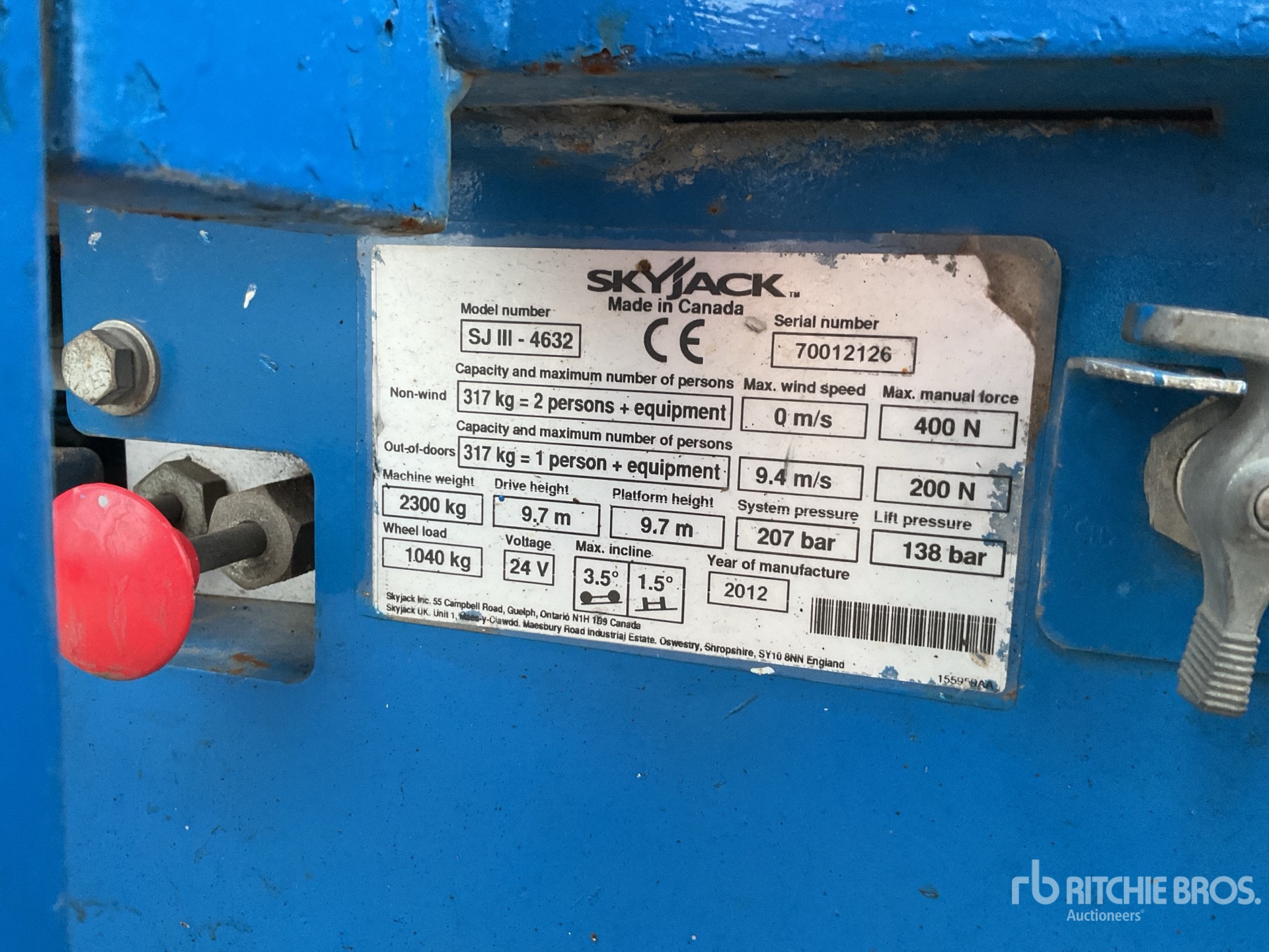 A qualified Ritchie Bros. employee collected detailed equipment information and performed functional tests on the key components of this asset. You, or a proxy, may also inspect any items on site prior to bidding on auction day.