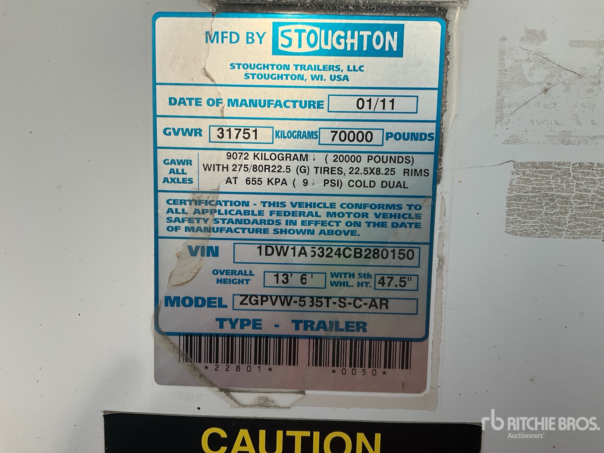 The detailed equipment information is limited in scope, and Ritchie Bros. Auctioneers has not inspected any aspects or components of the equipment other than those expressly set forth herein. Unless expressly stated, we make no representations or warranties, express or implied, concerning the equipment or its components, including without limitation any representations or warranties concerning functionality, conformity or compliance with any safety standard or requirement of any applicable authority or regulatory body, fitness for any particular purpose, or merchantability. You are strongly advised to perform your own detailed inspection of the equipment prior to bidding.
