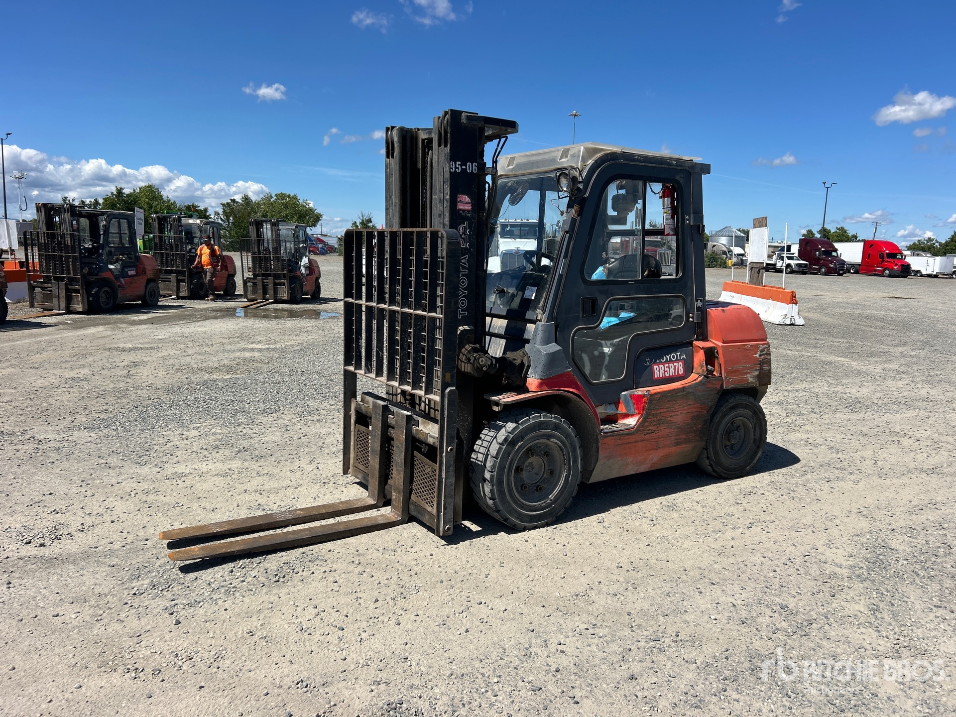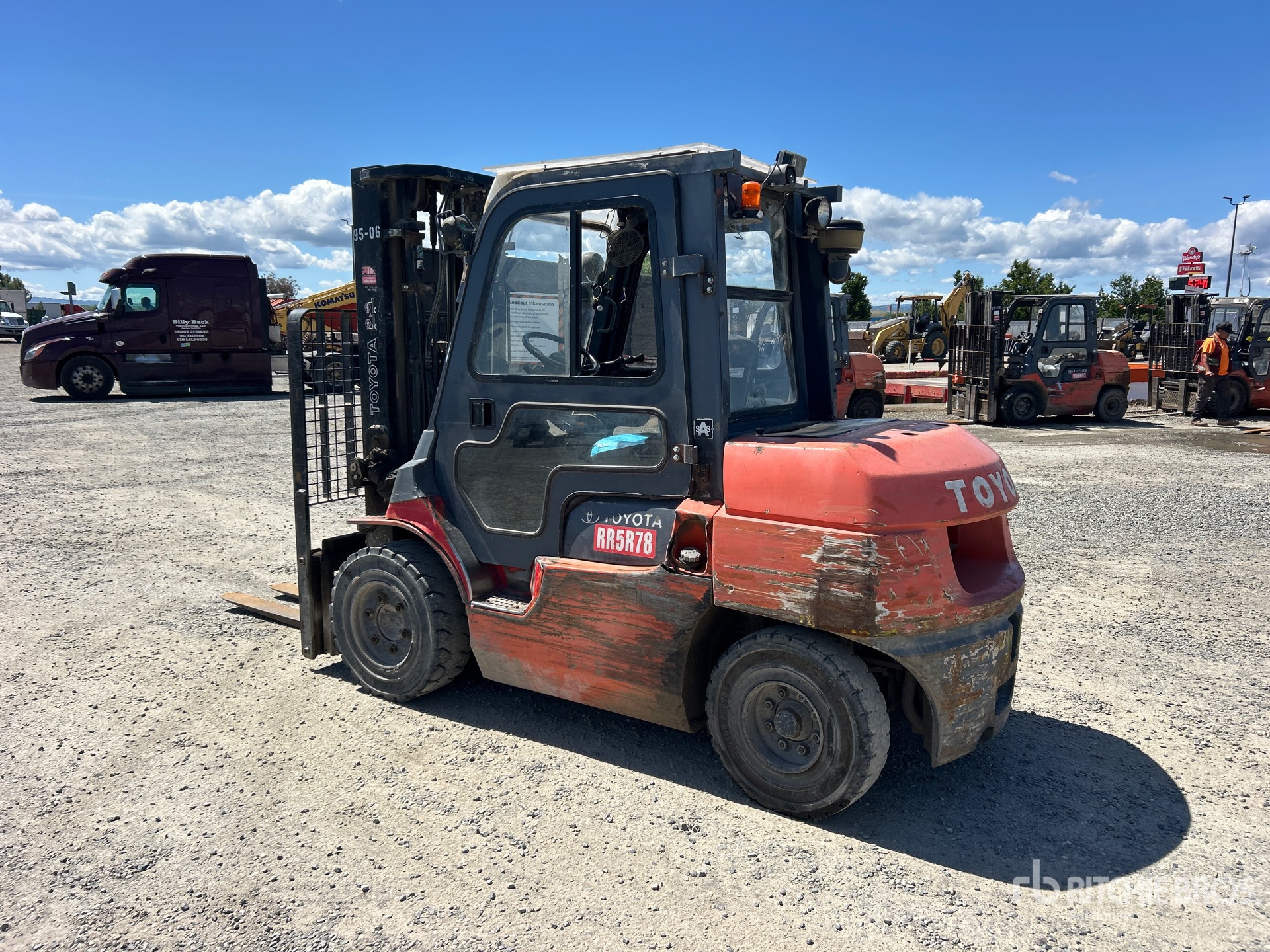 Enclosed Cab, 3 Stage Mast, 187 in Max Lift Height, 89 in Lowered Mast Height, 47 in Forks, Side Shift, 2011 US EPA Label, Toyota 5.205 L Diesel Engine