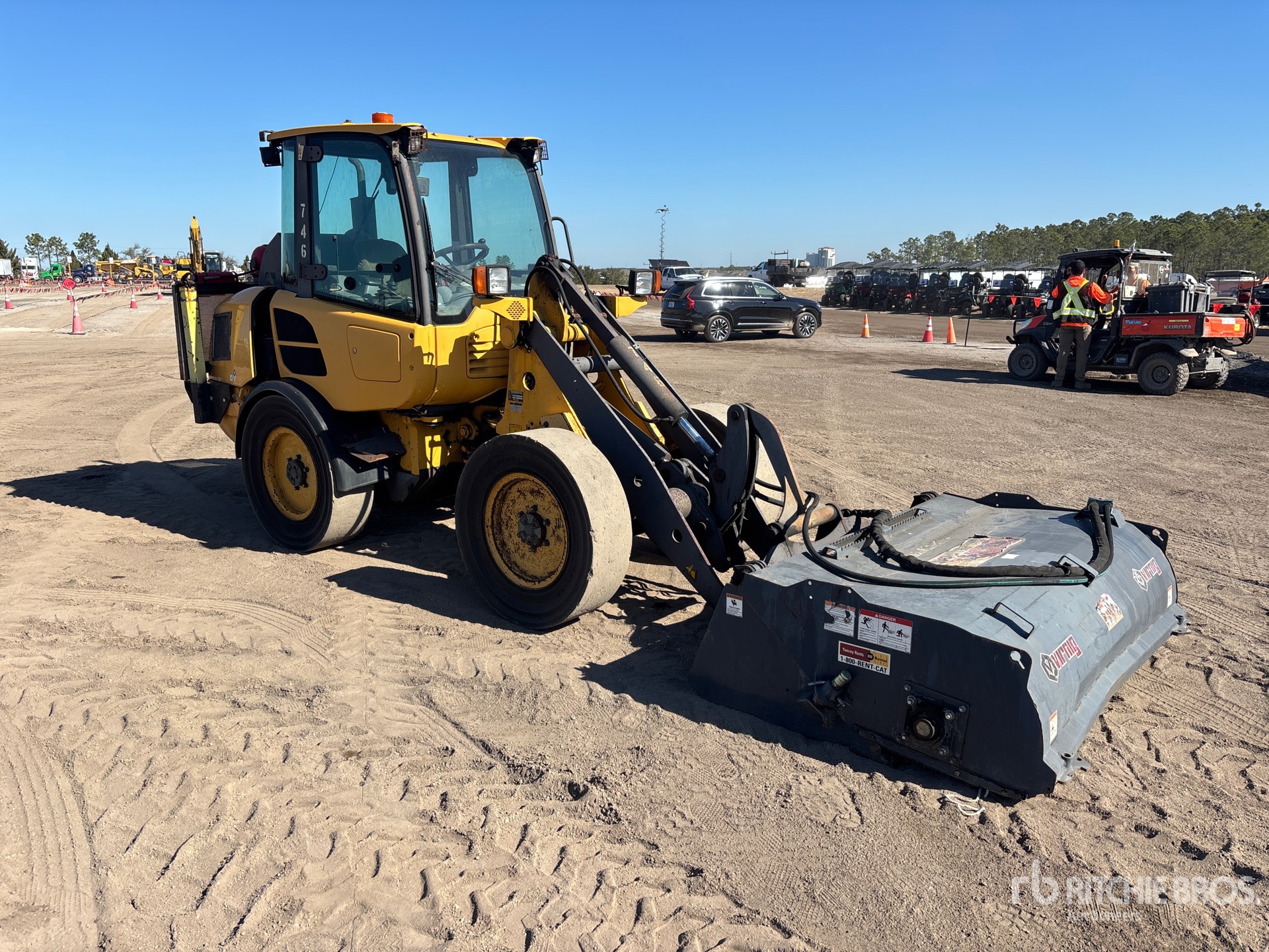 Located in Lane 1 Spot 345, Enclosed Cab, Air Conditioner, Hydraulic Coupler, Broom, 9.00-20 Solid Tires