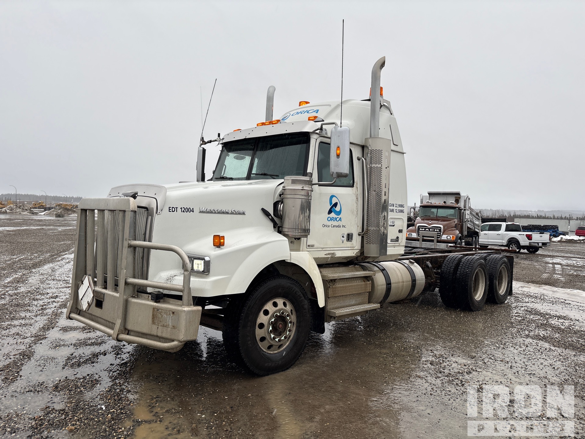 Cummins ISX15 425 hp Engine, 2011 US EPA Label, 10904.7 Engine hrs, Eaton Fuller RTLO16918B 18-Speed Manual Transmission, 14600 lb Front Axle, 46000 lb Rears, 60600 lb GVWR, Engine Brake, Double Differential Locks, 36 in Mid Roof Sleeper Cab, 250 in Wheelbase, Air Suspension, Aluminum Wheels, 315/80R22.5 Front Tires, 11R24.5 Rear Tires, Double Frame, Dual Fuel Tanks