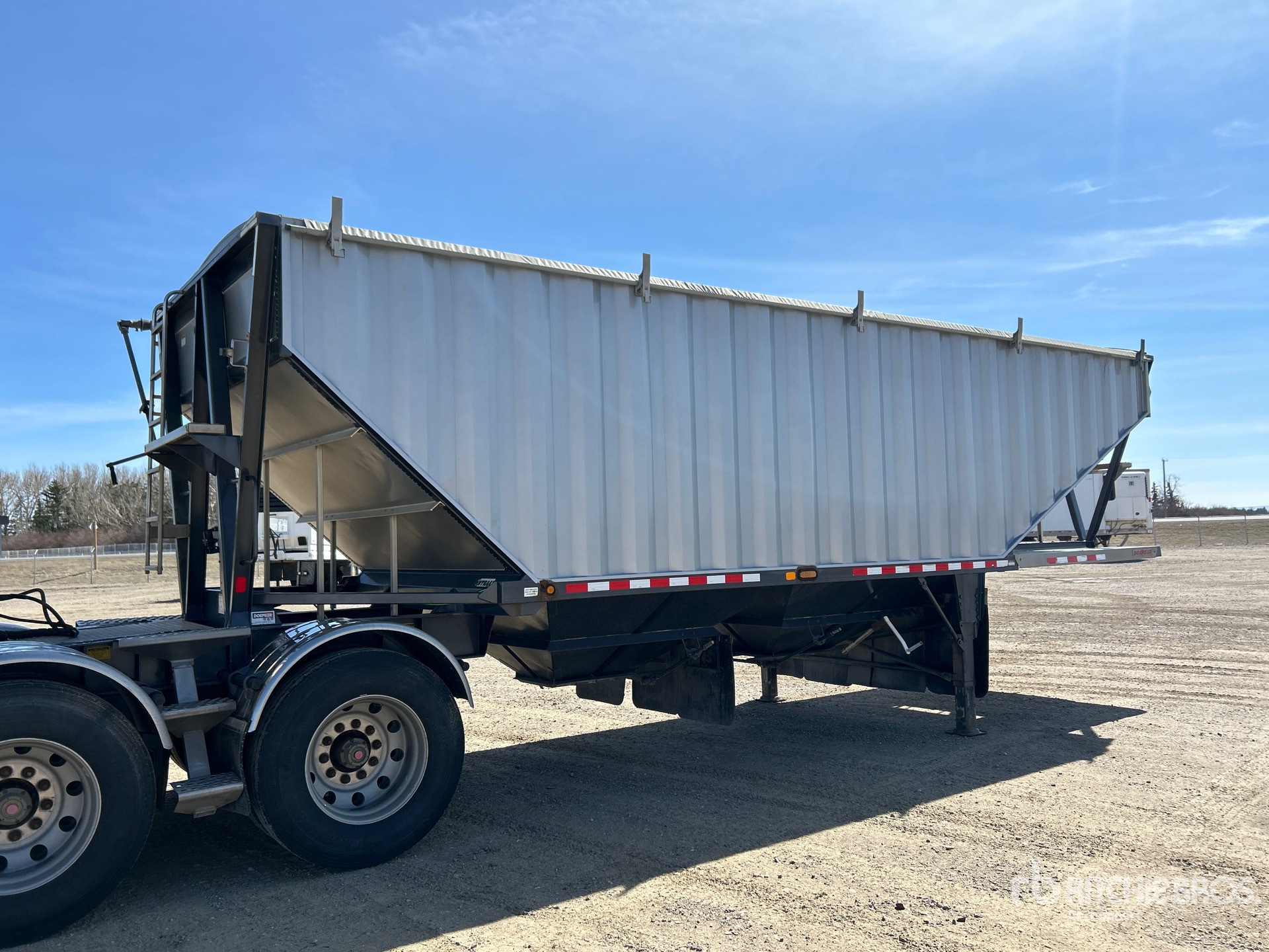 Air Ride Suspension, 2 Hoppers, 30 ft Steel Sides & Aluminum Slopes Box, 72 in, Side Walls, Open Ended, Manual Roll Tarp, Air Scales, Aluminum Wheels, 11R24.5 Tires, 77200 lb GVWR
