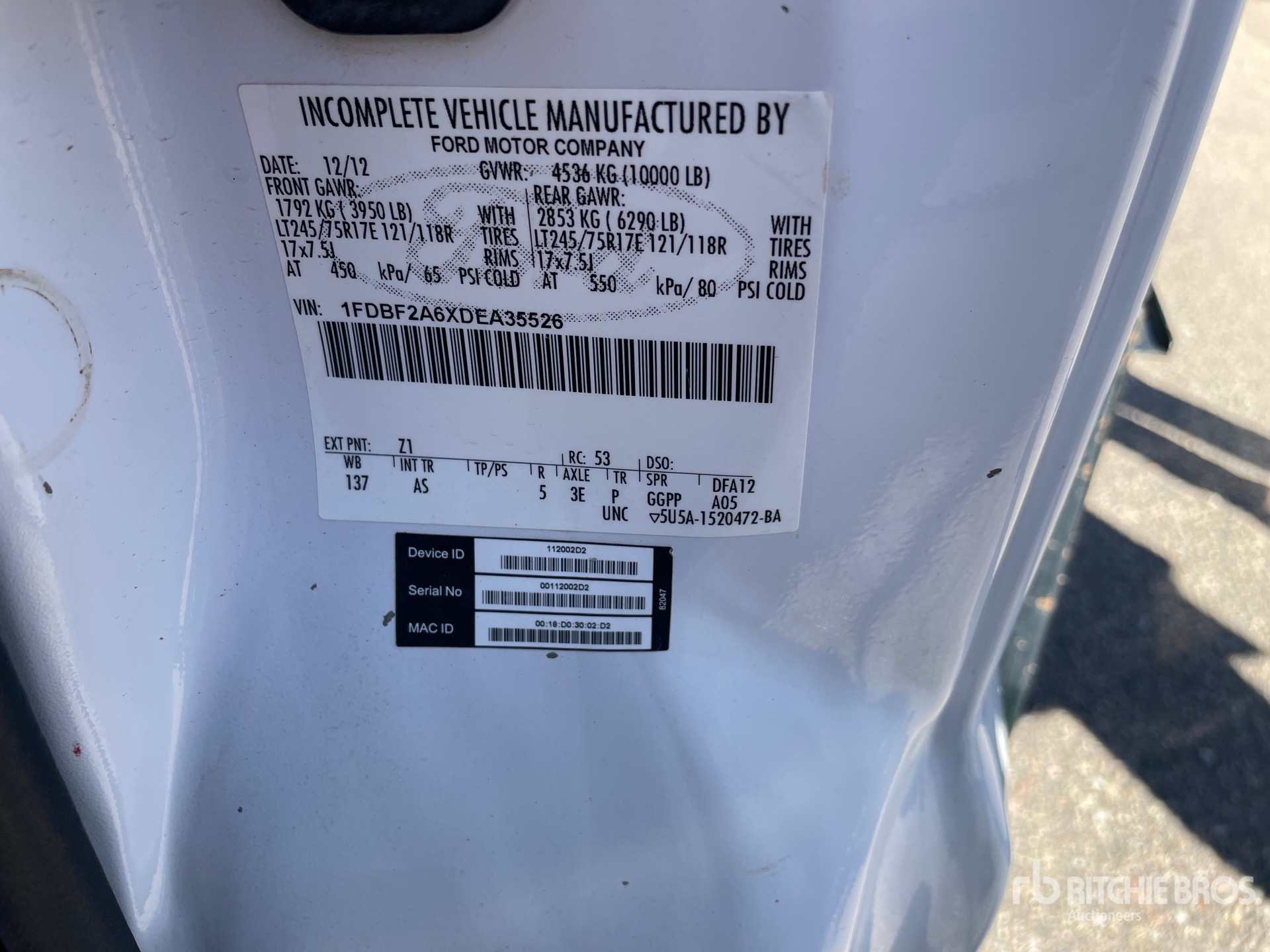 Located in Lane 14 Spot 39, Ford Motors V8 6.2 L Gasoline Engine, 2015 US EPA Label, Automatic Transmission, 3950 lb Front Axle, 6290 lb Rears, 10000 lb GVWR, 265/70R17, Spring Suspension, 137 in Wheelbase, 8 ft 9 in x 89 in Bed