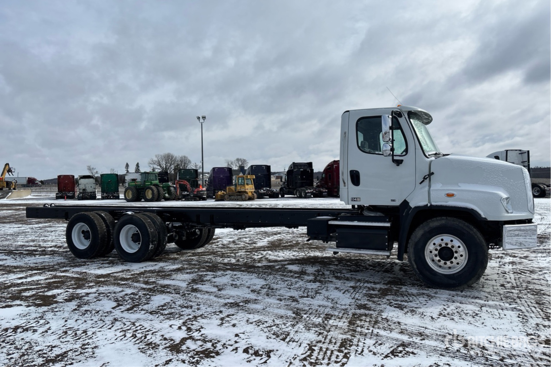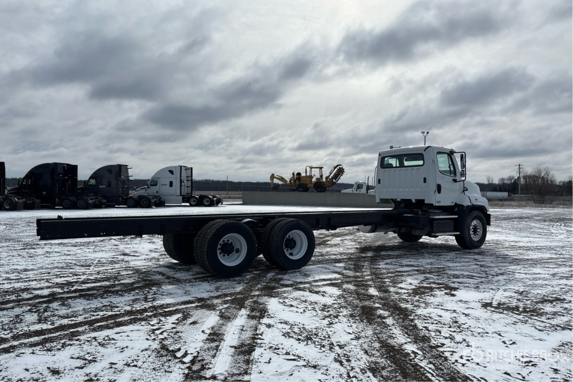 Located in Lane 10 Spot 29, Detroit DD13 6 Cylinder 12.8 L Diesel 500 hp Engine, 2012 US EPA Label, 15692 Engine hrs, Engine Brake, Eaton Fuller 10-Speed Manual Transmission, 20000 lb Front Axle, 46000 lb Rears, Meritor RT-46-160P Drive Axles, 3.91:1 Axle Ratio, 66000 lb GVWR, Aluminum Front Wheels, 425/65R22.5 Front Tires, 11R22.5 Rear Tires, Double Frame, Spring Suspension, 277 in Wheelbase, 204 in Cab to Axle, 348 in Cab to End of Frame
