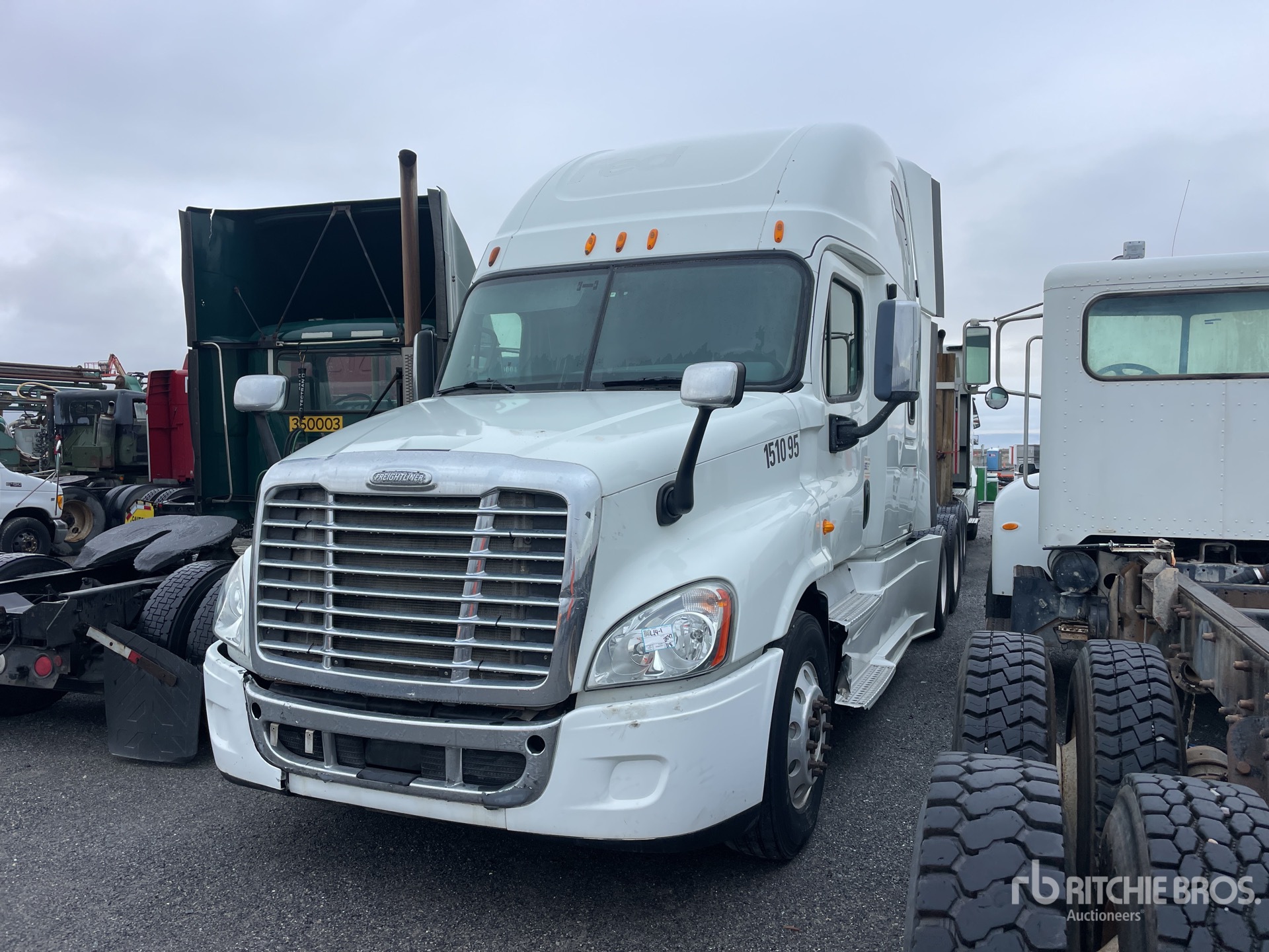 Detroit DD15 505 hp Engine, 2012 US EPA Label, 27043 Engine hrs, Eaton Fuller RTLO-16913A 13-Speed Manual Transmission, 12000 lb Front Axle, 40000 lb Rears, 52000 lb GVWR, 70 in High Rise Sleeper Cab, 226 in Wheelbase, Air Suspension, 295/75R22.5, Air Sliding 5th Wheel