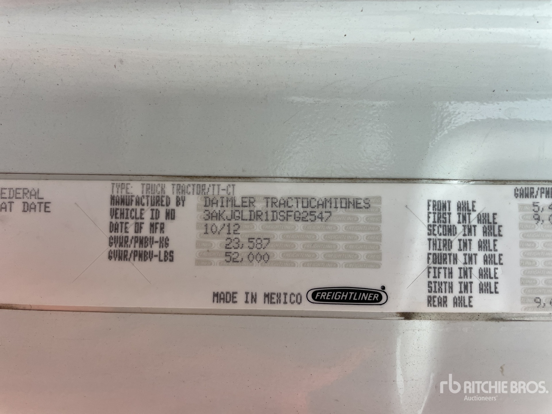 The detailed equipment information is limited in scope, and Ritchie Bros. Auctioneers has not inspected any aspects or components of the equipment other than those expressly set forth herein. Unless expressly stated, we make no representations or warranties, express or implied, concerning the equipment or its components, including without limitation any representations or warranties concerning functionality, conformity or compliance with any safety standard or requirement of any applicable authority or regulatory body, fitness for any particular purpose, or merchantability. You are strongly advised to perform your own detailed inspection of the equipment prior to bidding.