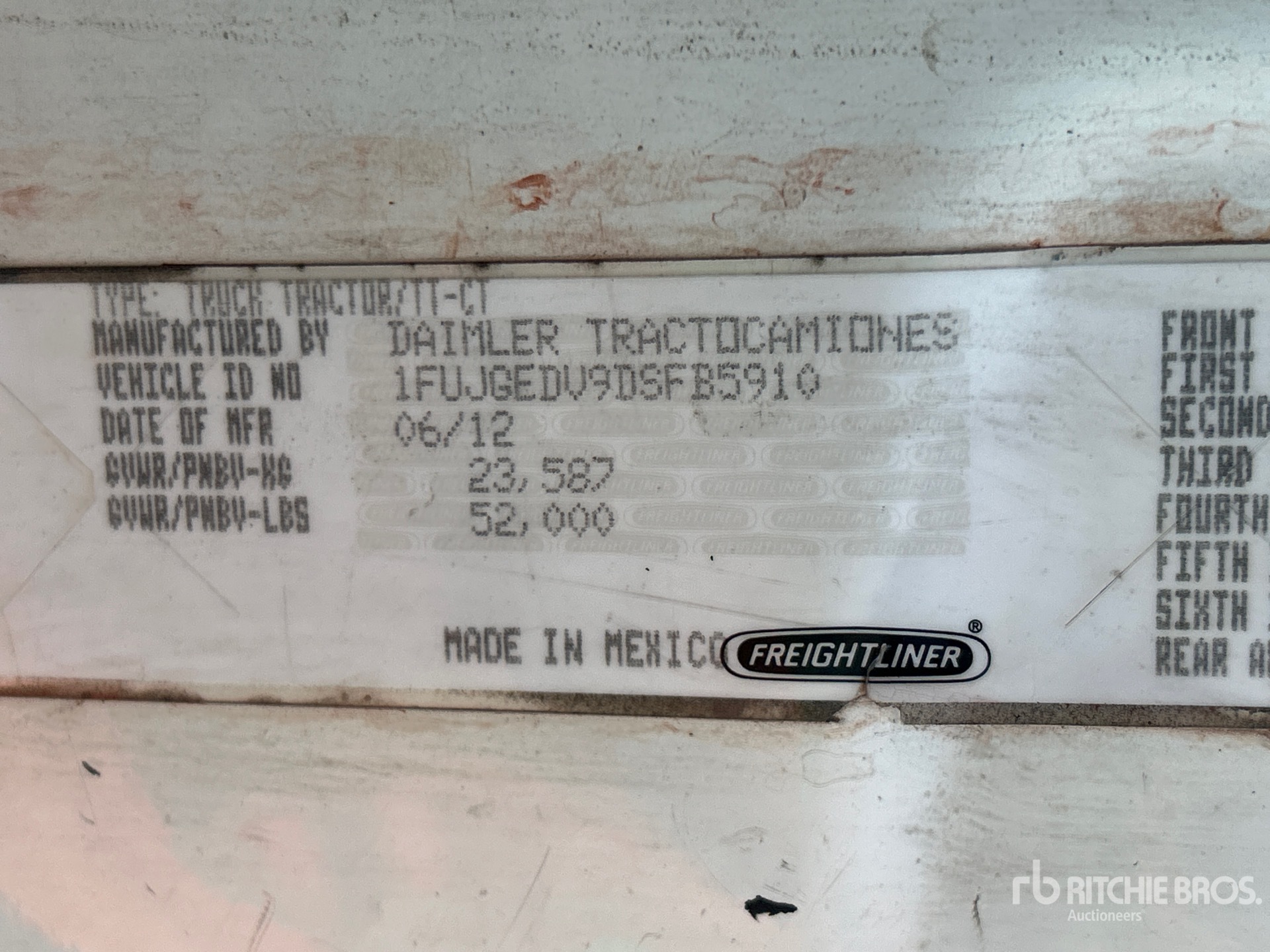 Detroit DD13 435 hp Engine, 2012 US EPA Label, 23225 Engine hrs, Eaton Fuller FRO-15210C 10-Speed Manual Transmission, 12000 lb Front Axle, 40000 lb Rears, 52000 lb GVWR, Engine Brake, 178 in Wheelbase, Air Suspension, 295/75R22.5, Air Sliding 5th Wheel, Dual Fuel Tanks