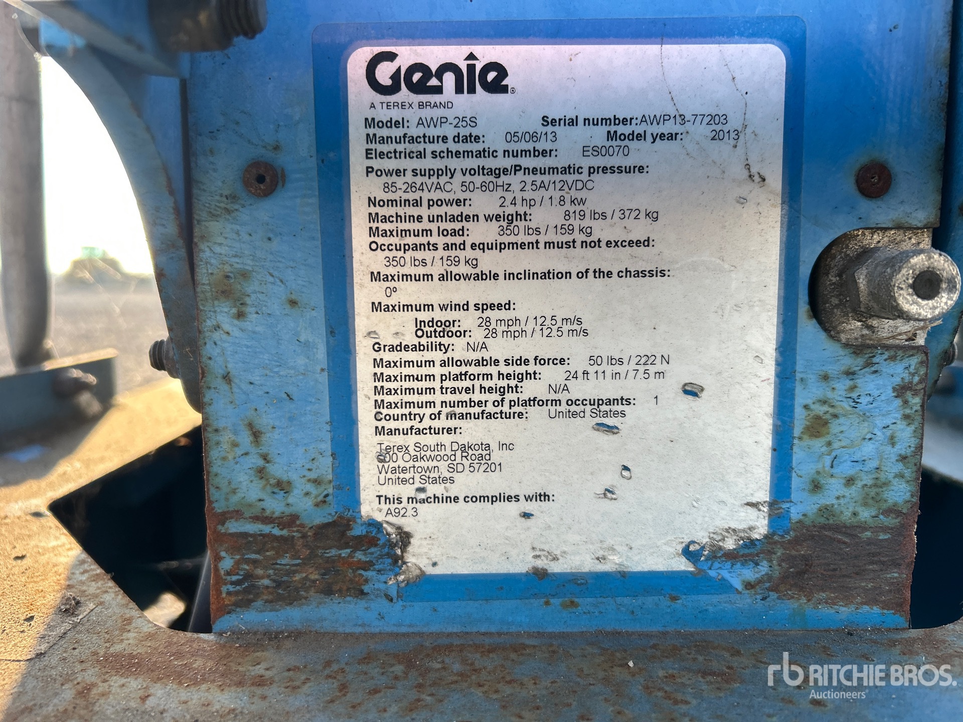 A qualified Ritchie Bros. employee collected detailed equipment information and performed functional tests on the key components of this asset. You, or a proxy, may also inspect any items on site prior to bidding on auction day.