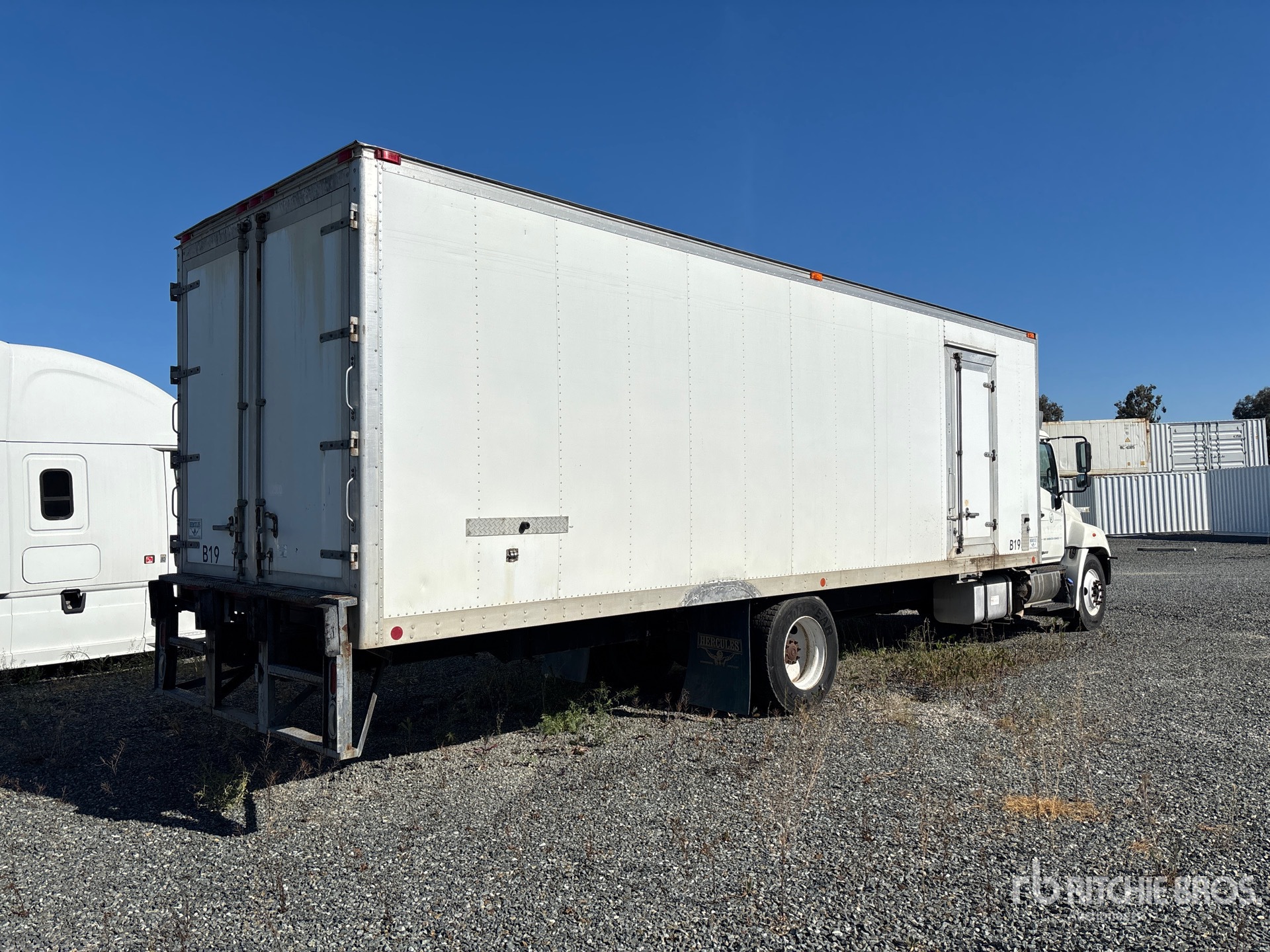 Hino 6 Cylinder Diesel 220 hp Engine, 2012 US EPA Label, Requires Diesel Exhaust Fluid, Engine Brake, 6-Speed Manual Transmission, 10000 lb Front Axle, 19000 lb Rears, 25950 lb GVWR, 11R22.5, Spring Suspension, 254 in Wheelbase, Carrier Reefer Unit, Hercules 28 ft x 102 in Wide x 88 in High Body, Curbside Door