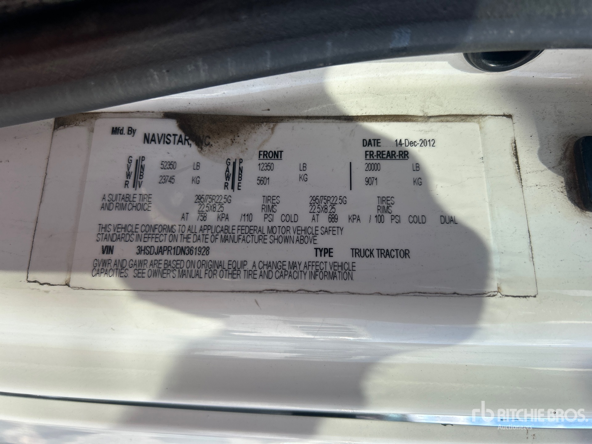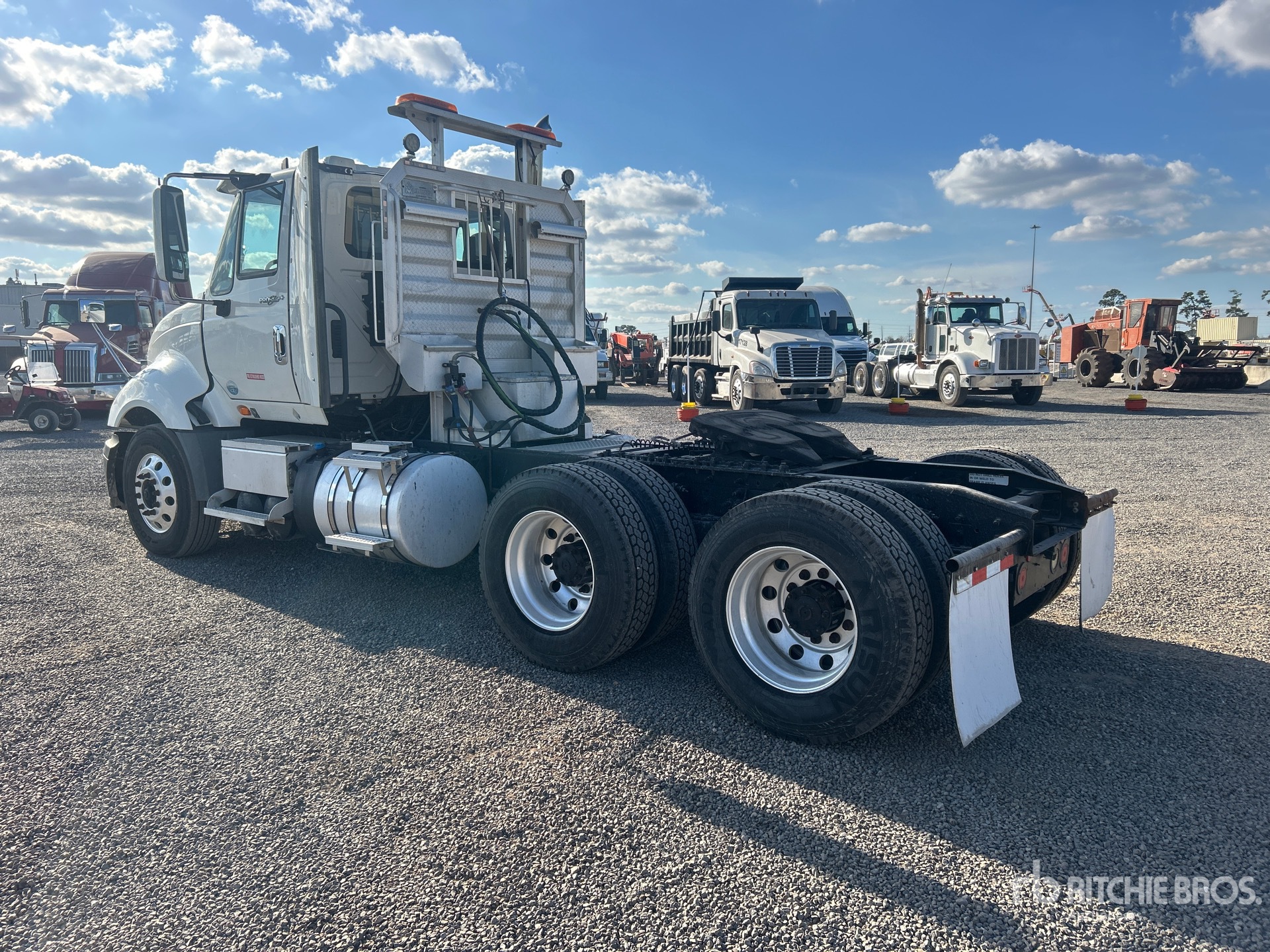 Cummins ISX15 450 hp Engine, 2013 US EPA Label, 16871 Engine hrs, Eaton Fuller 10-Speed Manual Transmission, 12350 lb Front Axle, 40000 lb Rears, 52350 lb GVWR, Engine Brake, 188 in Wheelbase, Air Suspension, Aluminum Outer Wheels, 295/75R22.5, Air Sliding 5th Wheel, Dual Fuel Tanks, Headache Rack