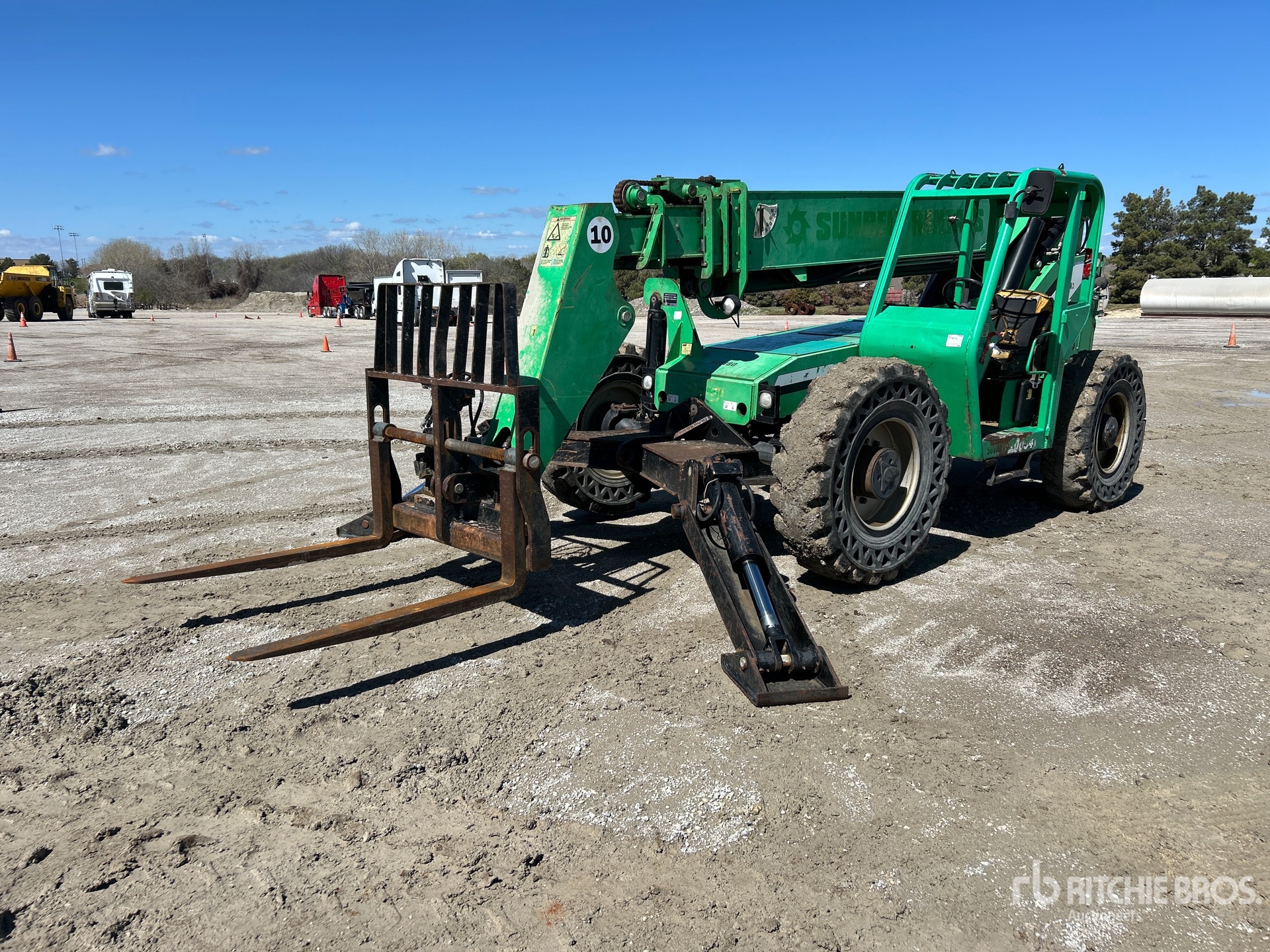 Open Operator Station, 54 ft Max Lift Height, 10000 lb Max Lift Capacity, 2012 US EPA Label, 48 in Forks, Tilt Carriage, Manual Coupler, Outriggers, Frame Leveling, Auxiliary Hydraulic Plumbing, 14.00-24 Aperture Tires