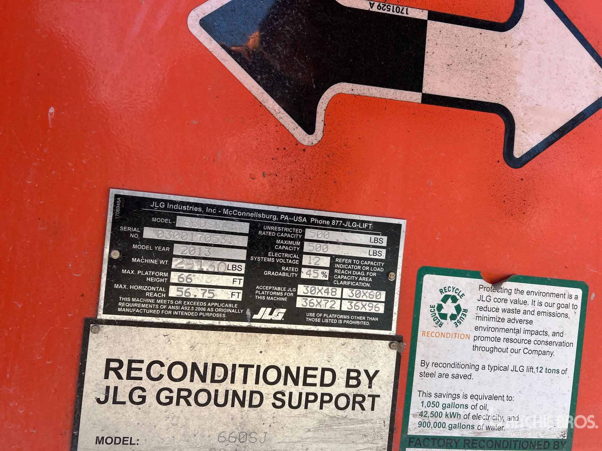 66 ft Max Platform Height, 500 lb Max Weight Capacity, Jib, Power to Platform, 2013 US EPA Label, Deutz 4 Cylinder Diesel Engine, 39x15-22.5 Tires