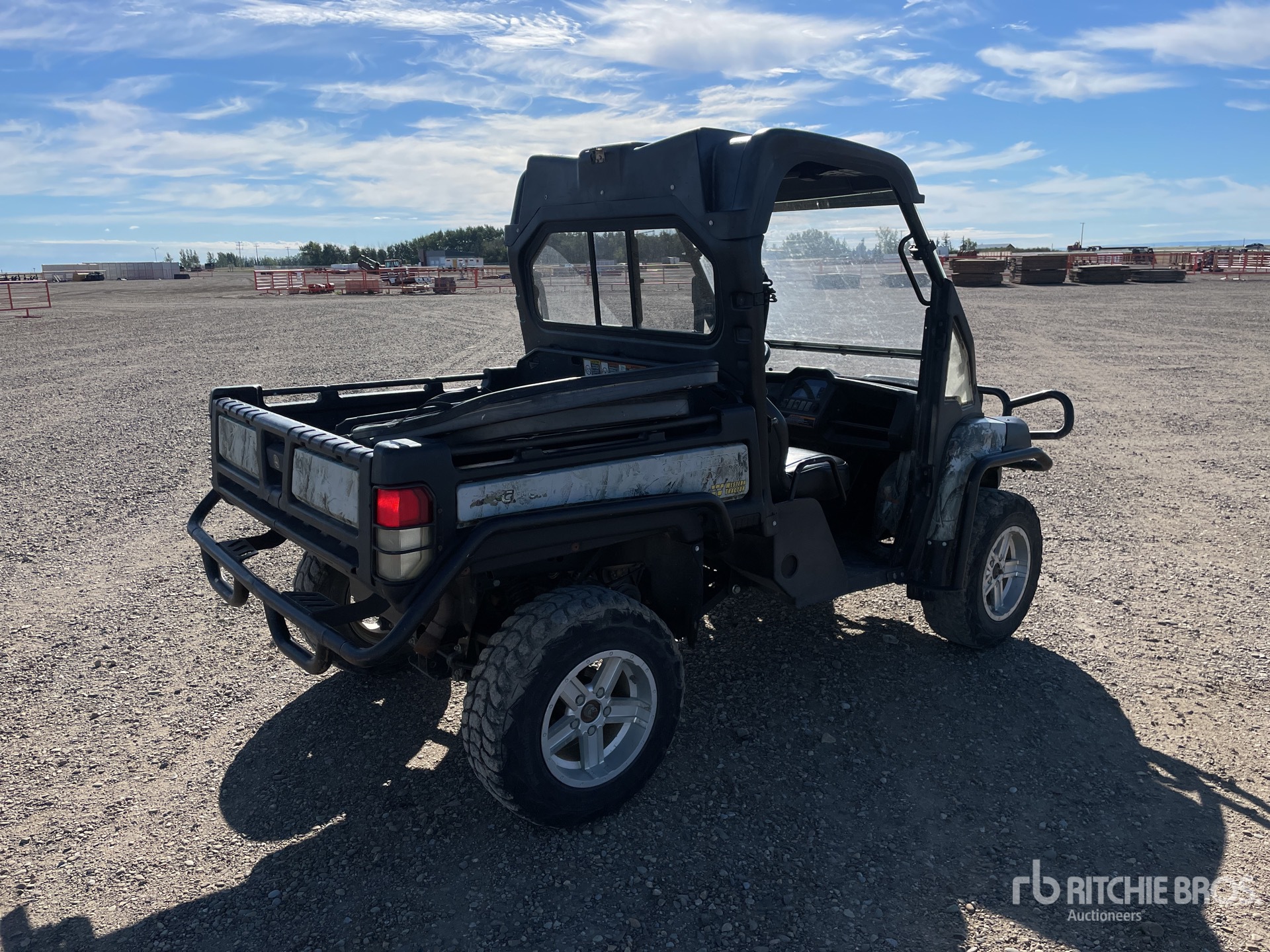 Enclosed Cab, 2 Passenger, Windshield, Rear Screen, Brush Guard, Hitch Receiver, Electric Dump Bed, John Deere 3 Cylinder Gasoline Engine