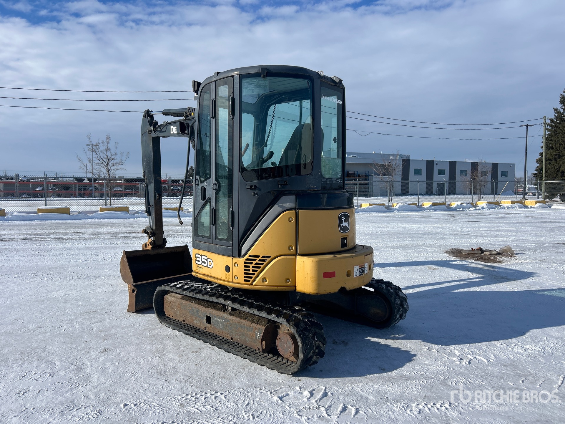 Enclosed Cab, Air Conditioner, Straight Travel Pedal, 2012 US EPA Label, Swing Boom, 5 ft 8 in Stick, Auxiliary Hydraulic Plumbing, Backfill Blade, 12 in Rubber Tracks, Manual Quick Coupler, 40 in Cleanup Bucket, Additional 18 in Cleanup Bucket