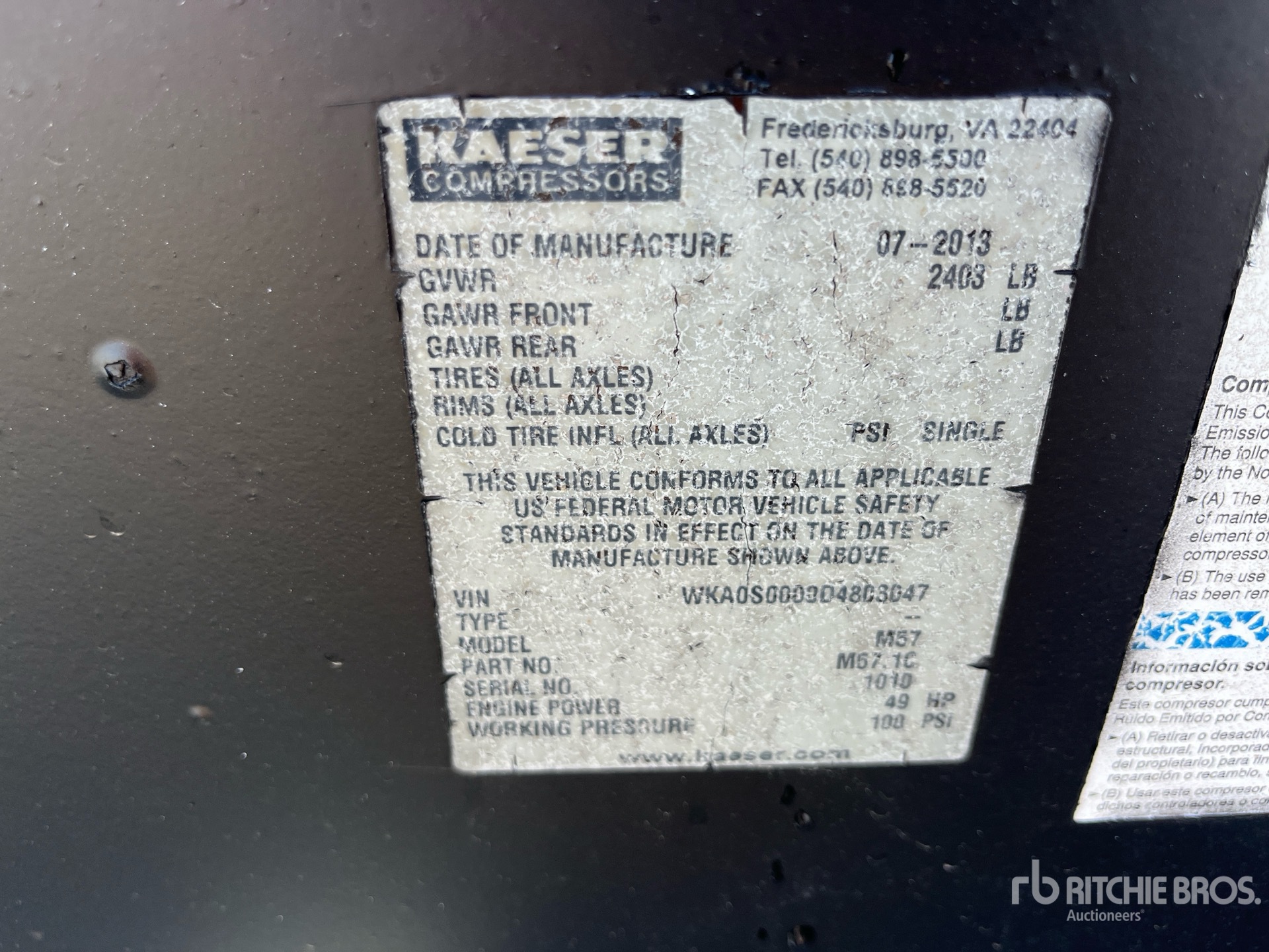 A qualified Ritchie Bros. employee collected detailed equipment information and performed functional tests on the key components of this asset. You, or a proxy, may also inspect any items on site prior to bidding on auction day.