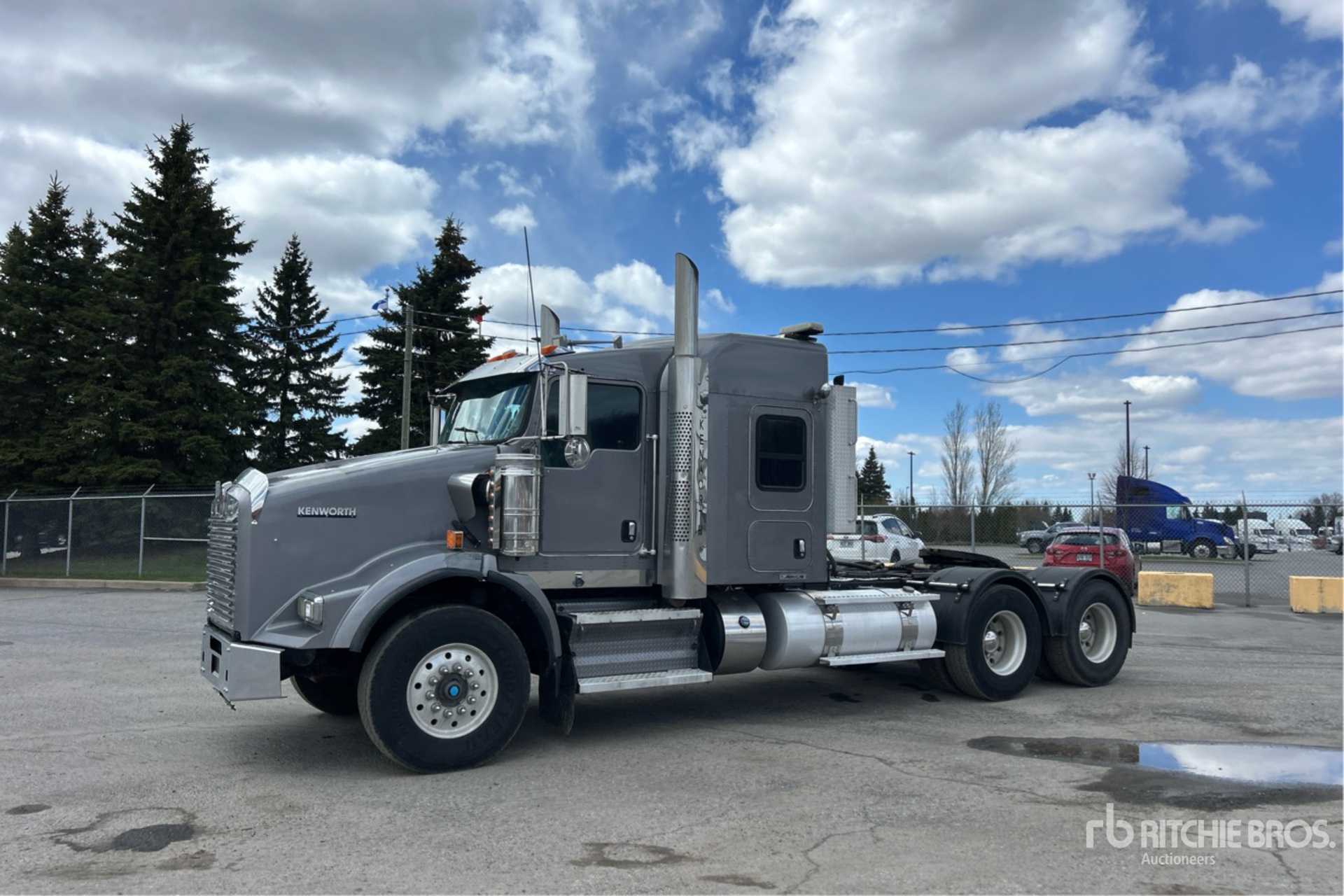 Cummins 525 hp Engine, 7767 Engine hrs, Eaton Fuller RTLO-1891 18-Speed Manual, 20000 lb Front Axle, 46000 lb Rears, 29938 kg GVWR, Engine Brake, Double Differential Locks, 52 in Flat Top Sleeper Cab, 234 in Wheelbase, Air Suspension, Aluminum Wheels, 315/80R22.5, Dual Steering Boxes, Double Frame, Wet Kit, Air Sliding 5th Wheel, Dual Fuel Tanks, Headache Rack, Lowboy Ramps