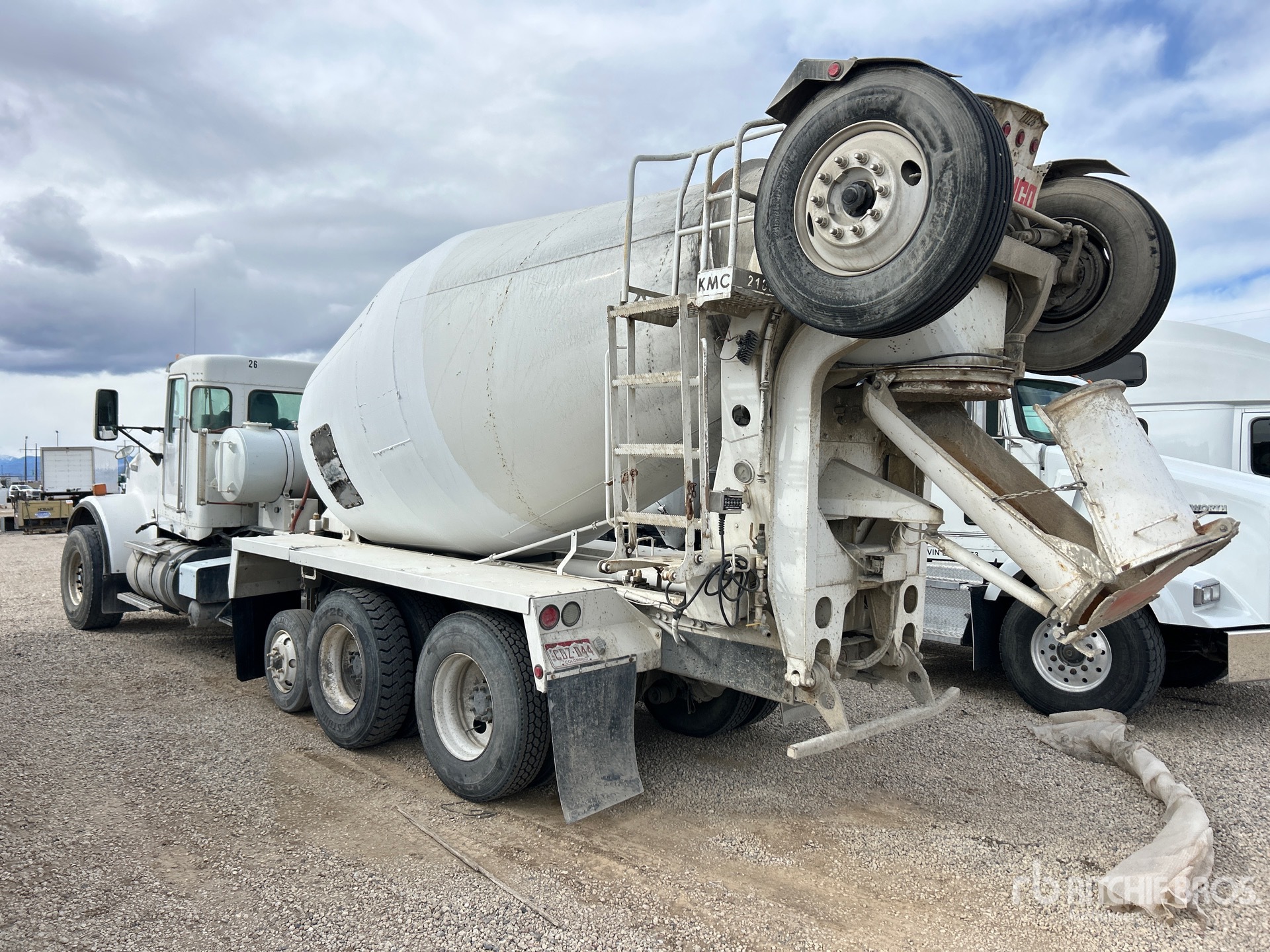 Cummins ISX 6 Cylinder 11.9 L Diesel 350 hp Engine, 2012 US EPA Label, 19032 Engine hrs, Engine Brake, Eaton Fuller FO-14E300ALL-VMS Automatic Transmission, 20000 lb Front Axle, 46000 lb Rears, 66000 lb GVWR, 425/65R22.5 Front Tires, 11R22.5 Rear Tires, Steerable Air Lift Pusher Axle, Steerable Air Lift Tag Axle, Trailing Tag Axle, Dual Steering Boxes, Rubber over Walking Beam Suspension, 252 in Wheelbase, Kimble 10.5 cyd Mixer Unit, 2 Removable Chutes