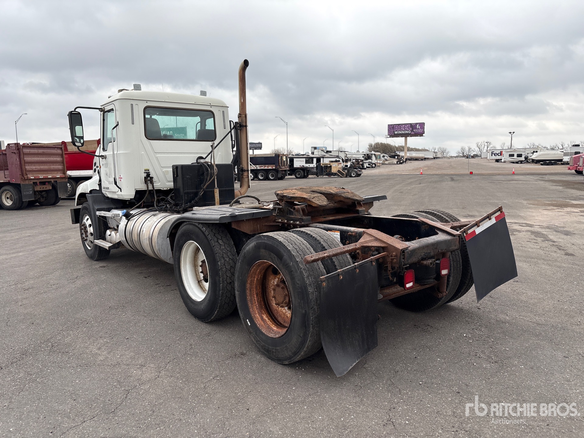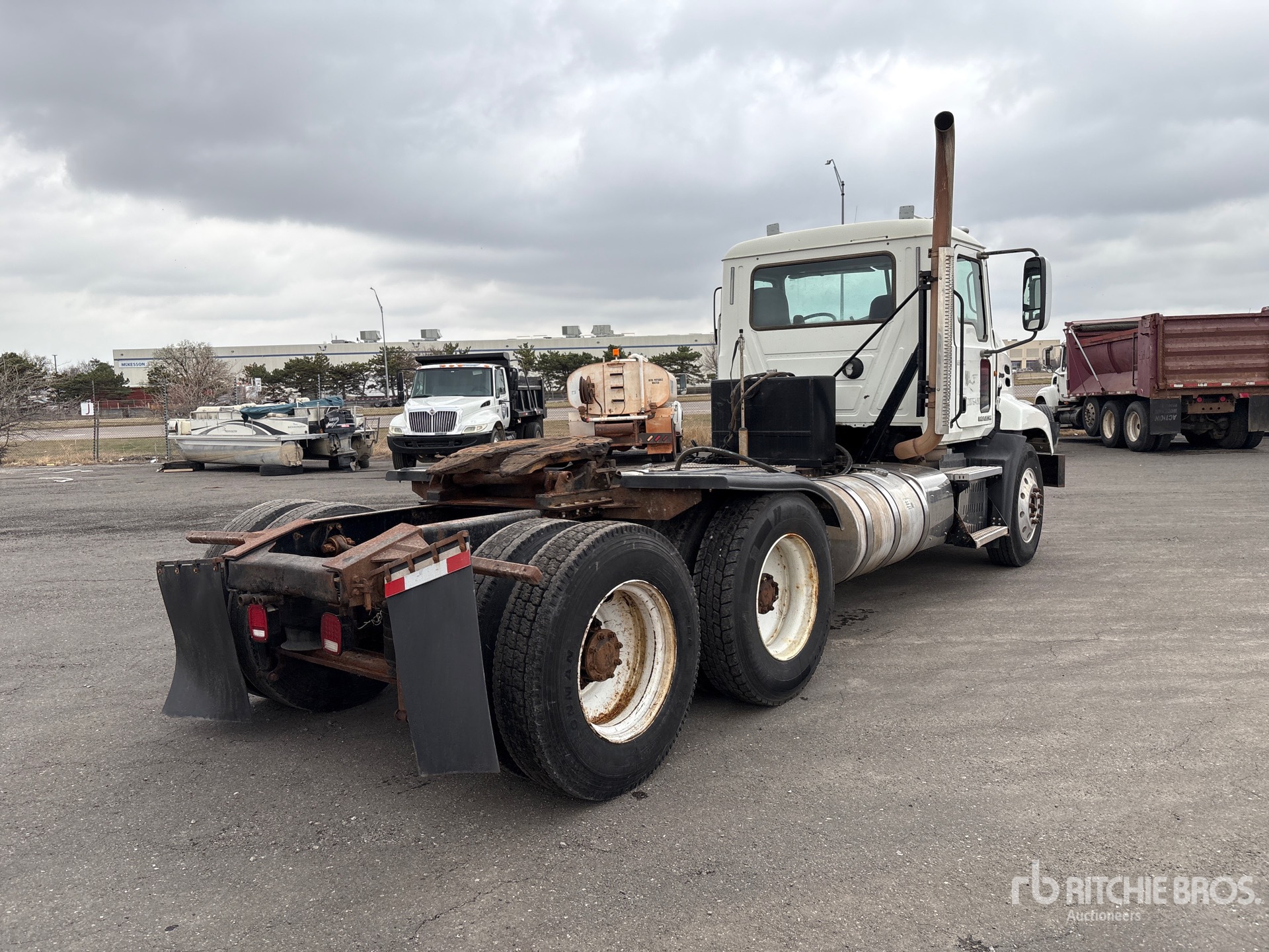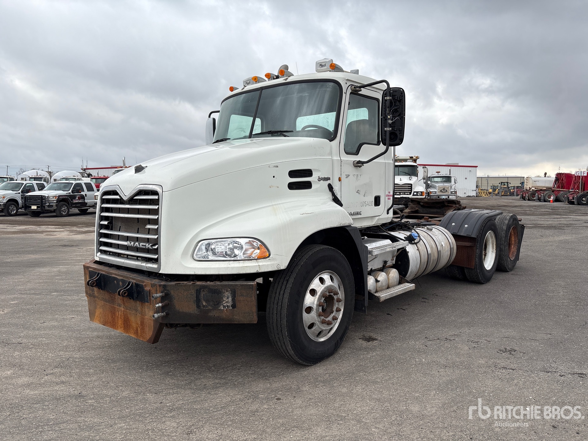 Mack MP8 445 hp Engine, 2012 US EPA Label, 23108 Engine hrs, Mack mDrive 12-Speed Automated Transmission 13220 lb Front Axle, 38000 lb Rears, 51220 lb GVWR, Engine Brake, Differential Lock, 196 in Wheelbase, Air Suspension, Aluminum Front Wheels, 11R24.5 Front Tires, 11R24.5 Rear Tires, Wet Kit, Dual Fuel Tanks