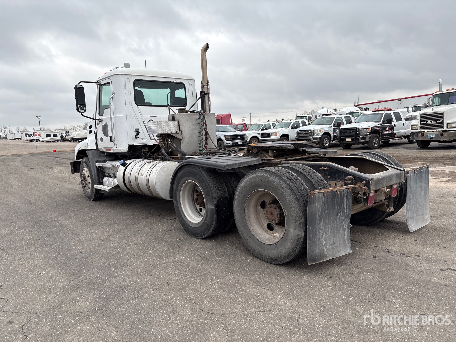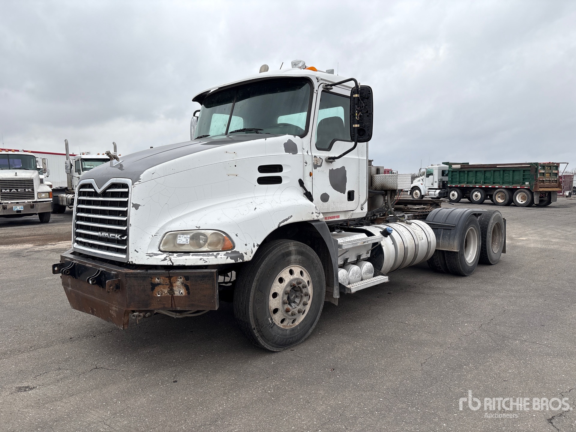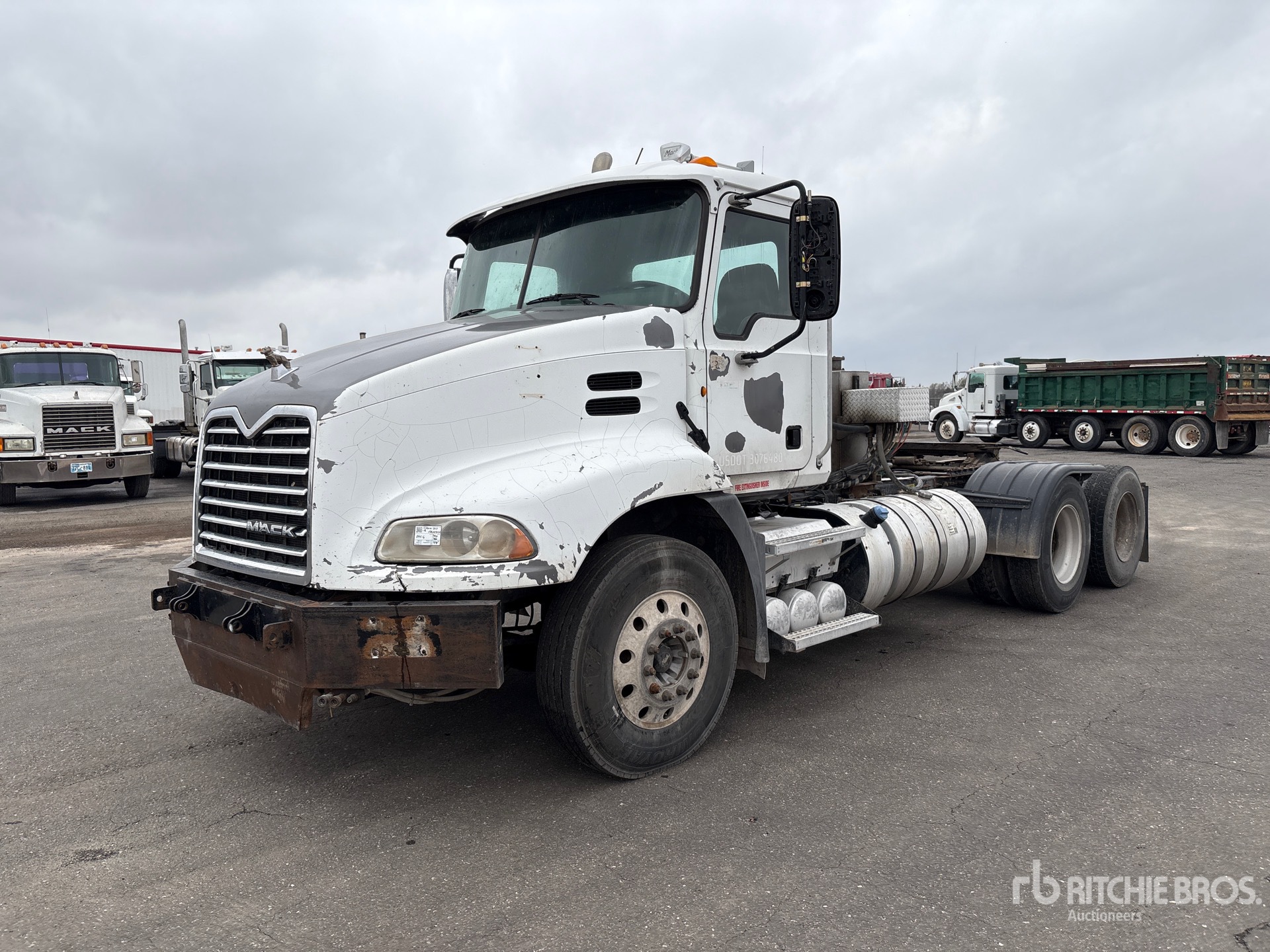 Mack MP8 445 hp Engine, 2012 US EPA Label, 18390 Engine hrs, Mack mDrive 12-Speed Automated Transmission 12000 lb Front Axle, 38000 lb Rears, 50000 lb GVWR, Engine Brake, Differential Lock, 197 in Wheelbase, Air Suspension, Aluminum Front Wheels, 11R22.5, Wet Kit, Air Sliding 5th Wheel, Dual Fuel Tanks