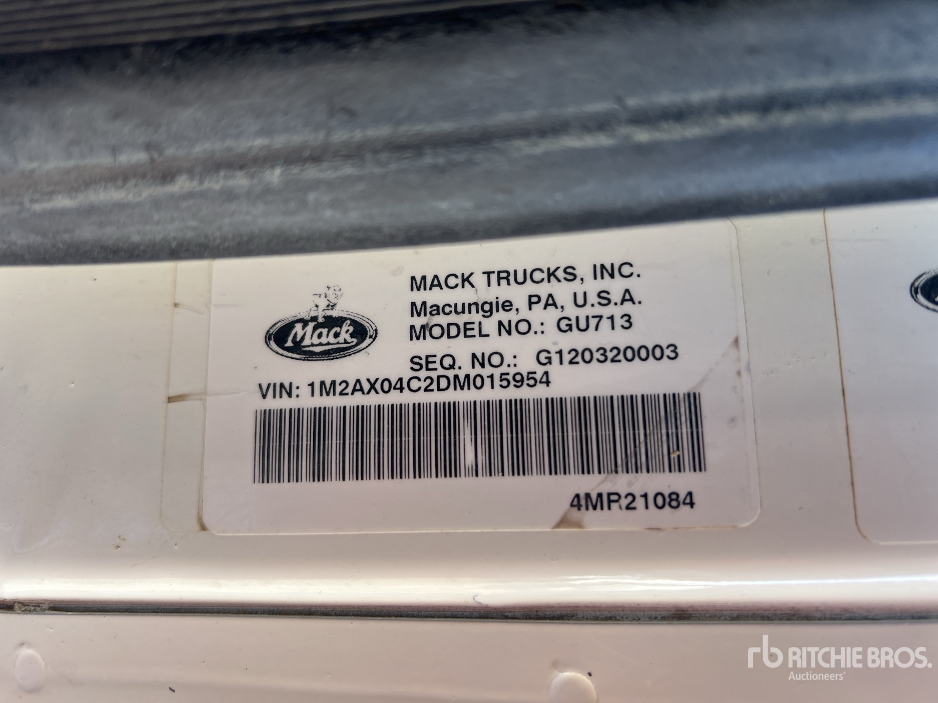 Mack MP7 6 Cylinder 10.8 L Diesel 395 hp Engine, 2012 US EPA Label, Requires Diesel Exhaust Fluid, 14862 Engine hrs, Engine Brake, Allison 6-Speed Automatic Transmission, 18000 lb Front Axle, 38000 lb Rears, 56000 lb GVWR, Air Ride Cab, 385/65R22.5 Front Tires, 11R22.5 Rear Tires, Steerable Air Lift Pusher Axle, Camelback Suspension, 258 in Wheelbase, PTO, Hilbilt 19 ft Long x 42 in High Steel Body, Round Bottom, Manual Roll Tarp, High-Lift Tailgate, Rear Hydraulics, Pintle Hitch