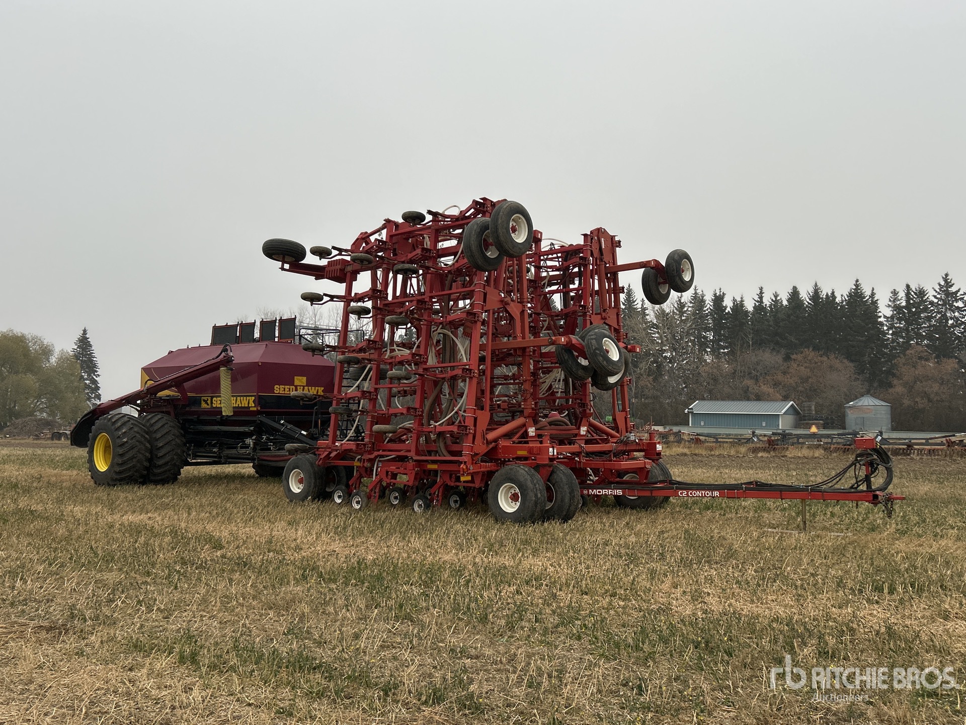 12 in Spacing, Single Shoot, 4.5 in Packer, 2011 Seed Hawk 600 3 Compartment Air Cart, Double Fan, 10 in Auger Loading System, 16.5-16.1F1 Front Tires 12 in Tire Spacing, Rear Hitch, Bag Lift