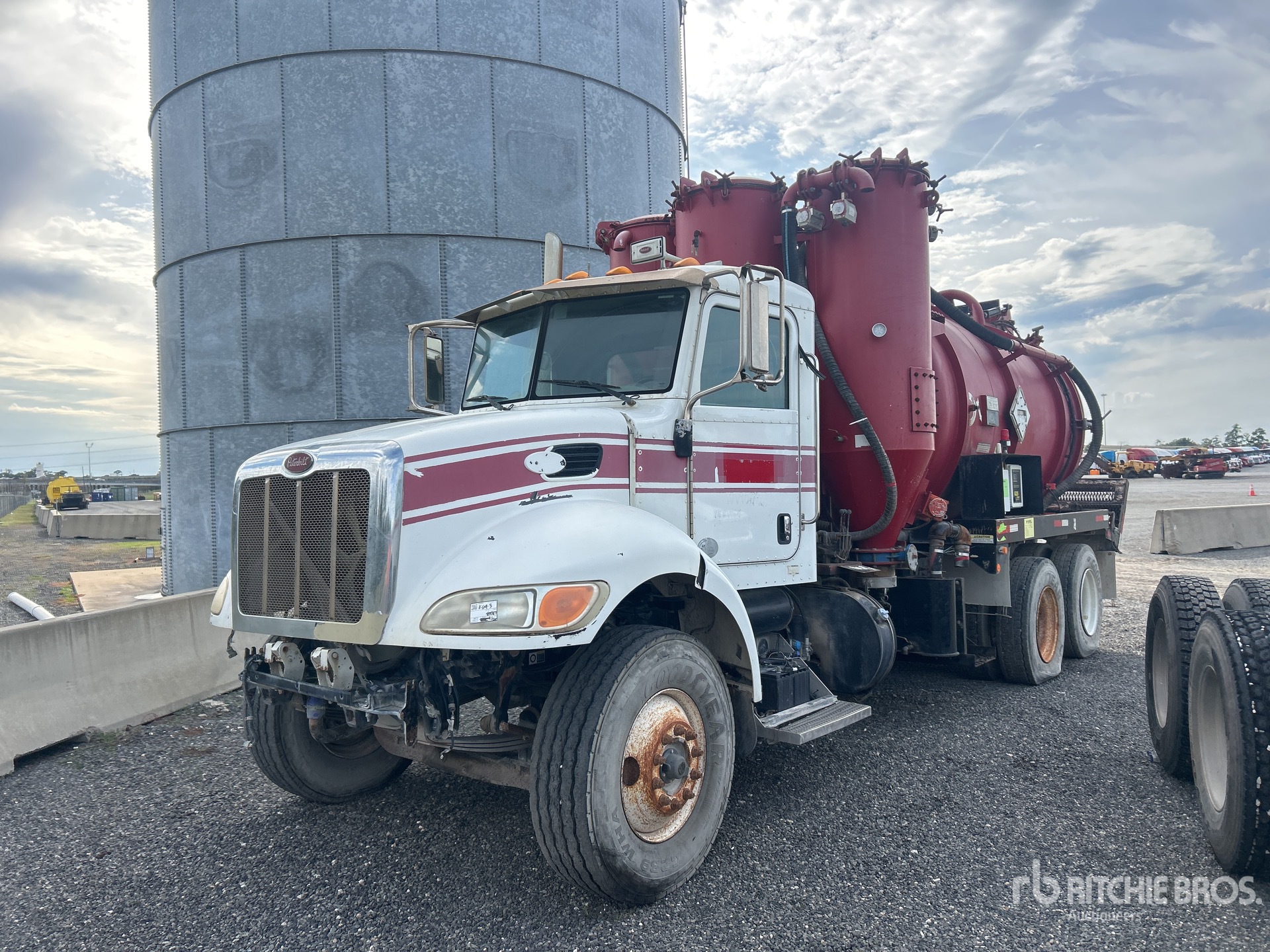 Located in Lane 64 Spot 1, 6 Cylinder Diesel Engine, Requires Diesel Exhaust Fluid, Engine Brake, Eaton Fuller Manual Transmission, 14600 lb Front Axle, 40000 lb Rears, 3.55:1 Axle Ratio, 54600 lb GVWR, 315/80R22.5 Front Tires, 11R22.5 Rear Tires, Air Trac Air Ride Suspension, 168 in Wheelbase, PTO, Steel 3000 gal Debris Tank, Hydraulic Lift Tailgate, Manual Tailgate Locks