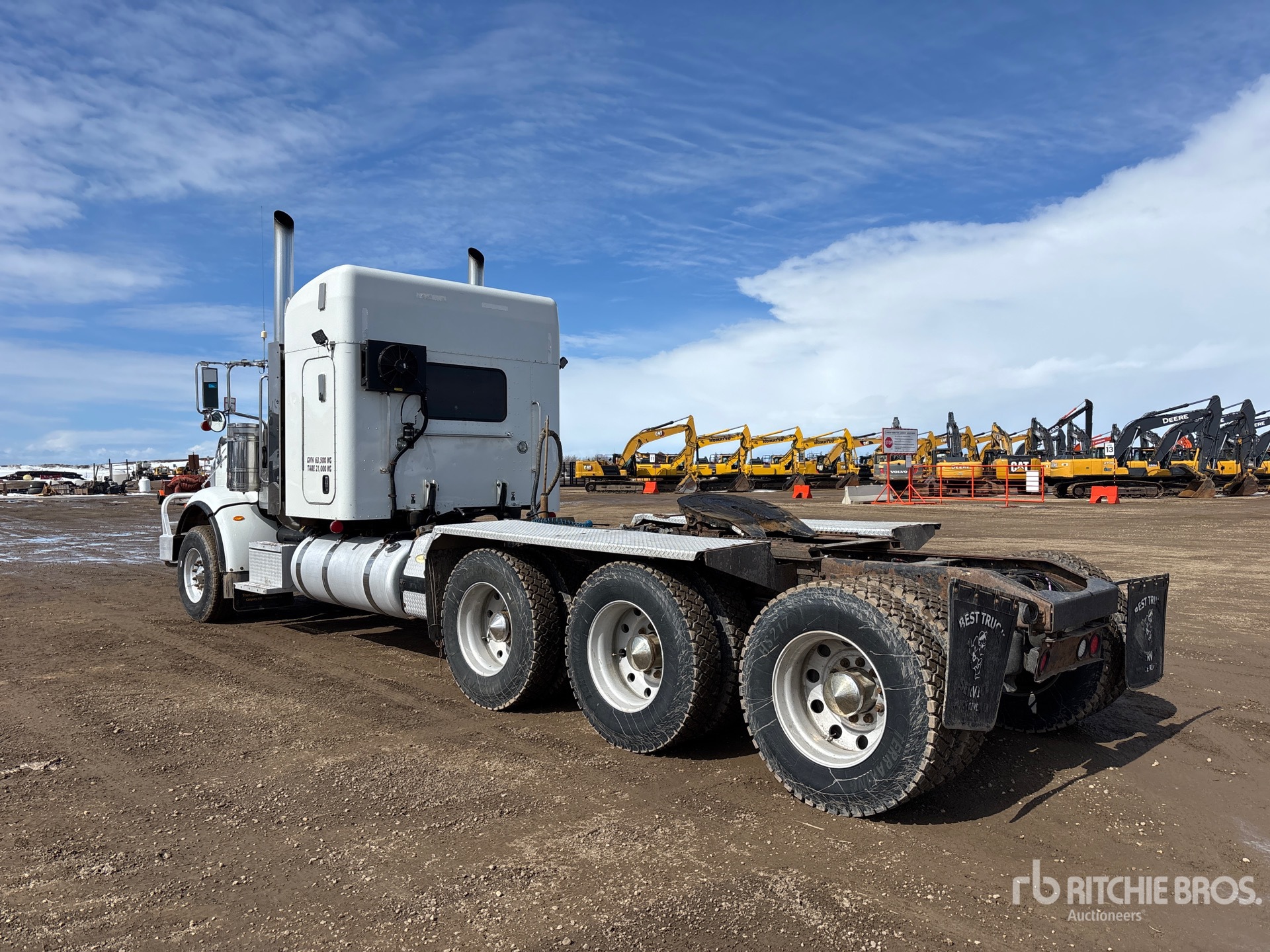 Cummins ISX 550 hp Engine, Positive Air Shutoff, 6058 Engine hrs, Eaton Fuller 18-Speed Manual Transmission, Eaton Fuller 2-Speed Auxiliary Transmission, 18740 lb Front Axle, 61000 lb Rears, 79740 lb GVWR, Engine Brake, 48 in Mid Roof Sleeper Cab, Carrier Sleeper Air Conditioner, 268 in Wheelbase, Air Suspension, Aluminum Wheels, 385/65R22.5 Front Tires, 11R22.5 Rear Tires, Dual Steering Boxes, Air Sliding 5th Wheel, Dual Fuel Tanks