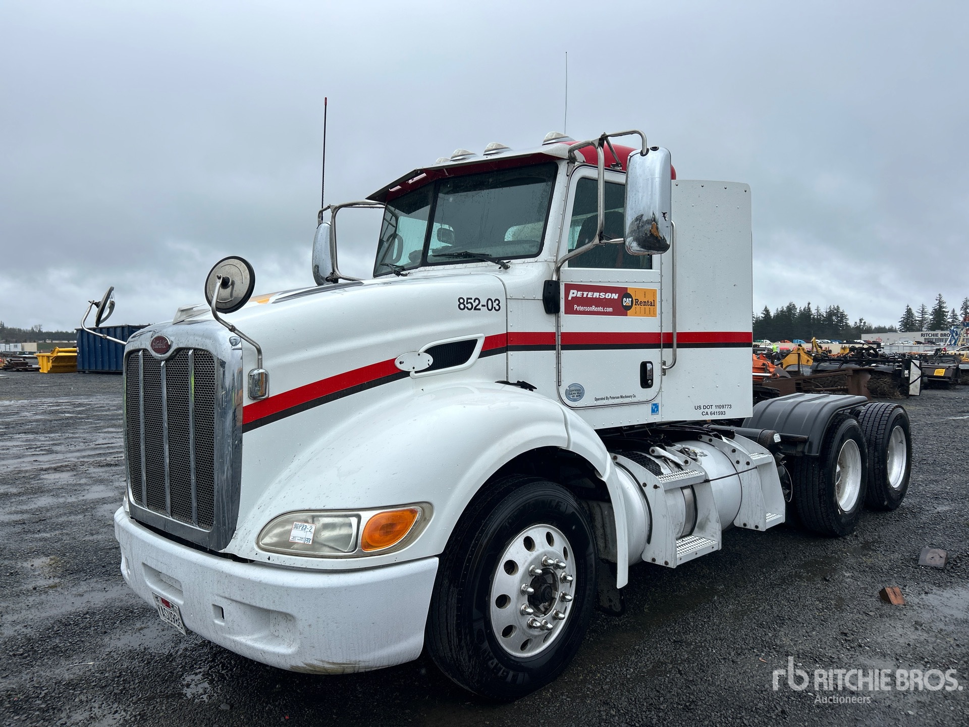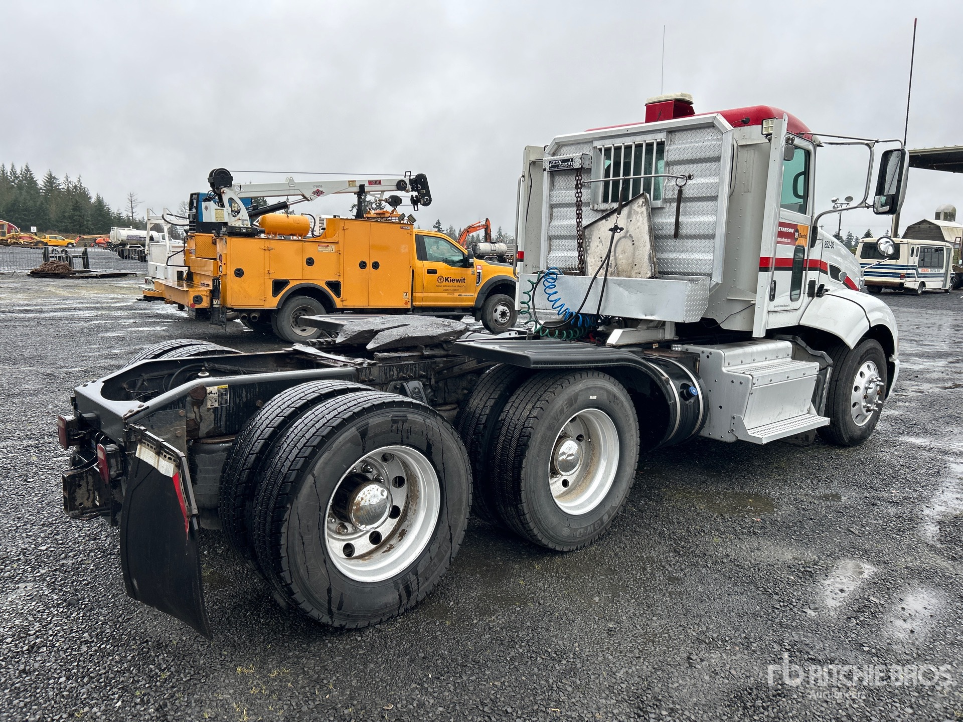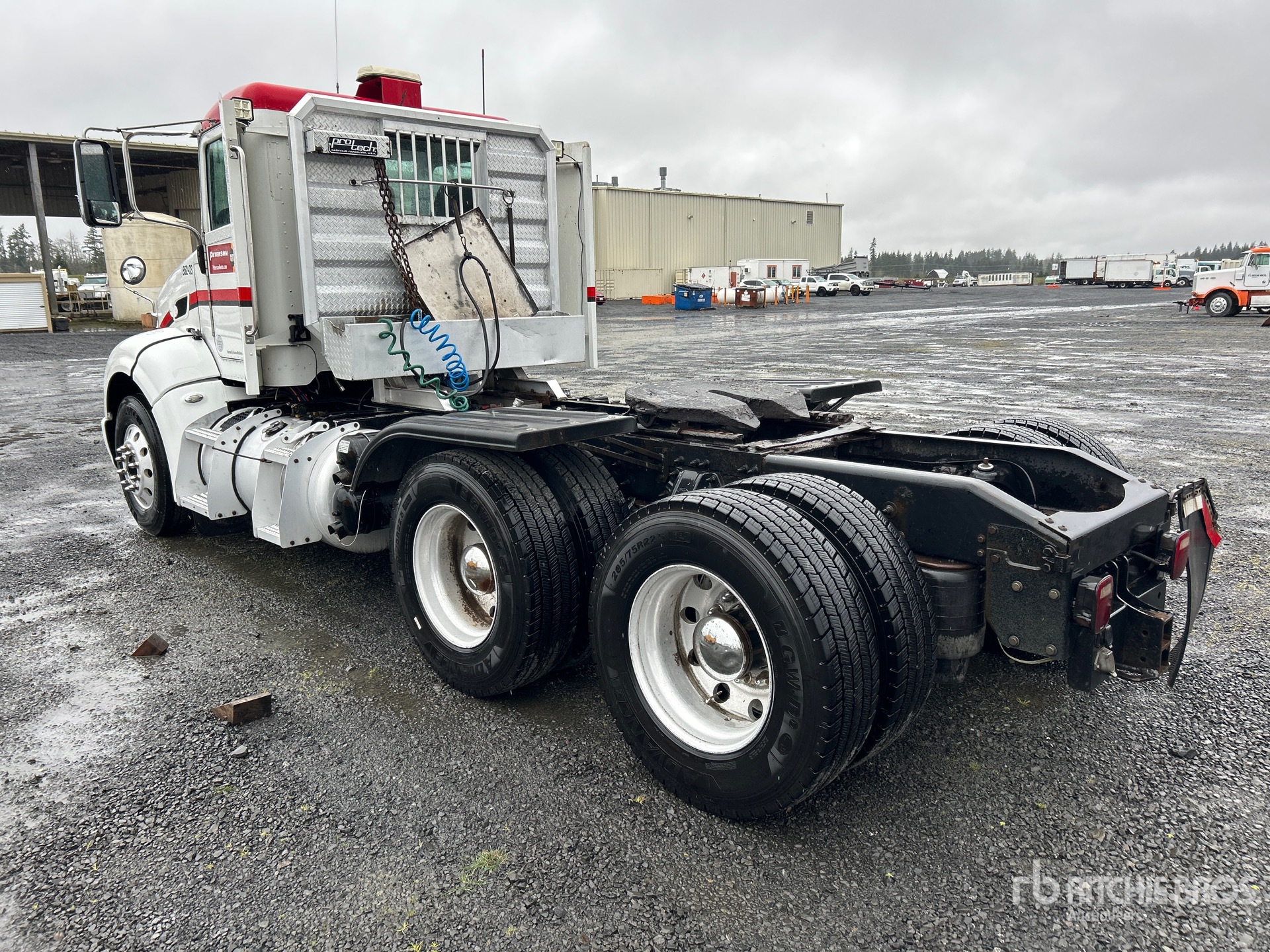 Pacaar MX 405 hp Engine, 2012 US EPA Label, 1260 Engine hrs, Eaton Fuller FRO15210C 10-Speed Manual Transmission, 12000 lb Front Axle, 40000 lb Rears, 52000 lb GVWR, 180 in Wheelbase, Air Suspension, Aluminum Outer Wheels, 295/75R22.5, Air Sliding 5th Wheel