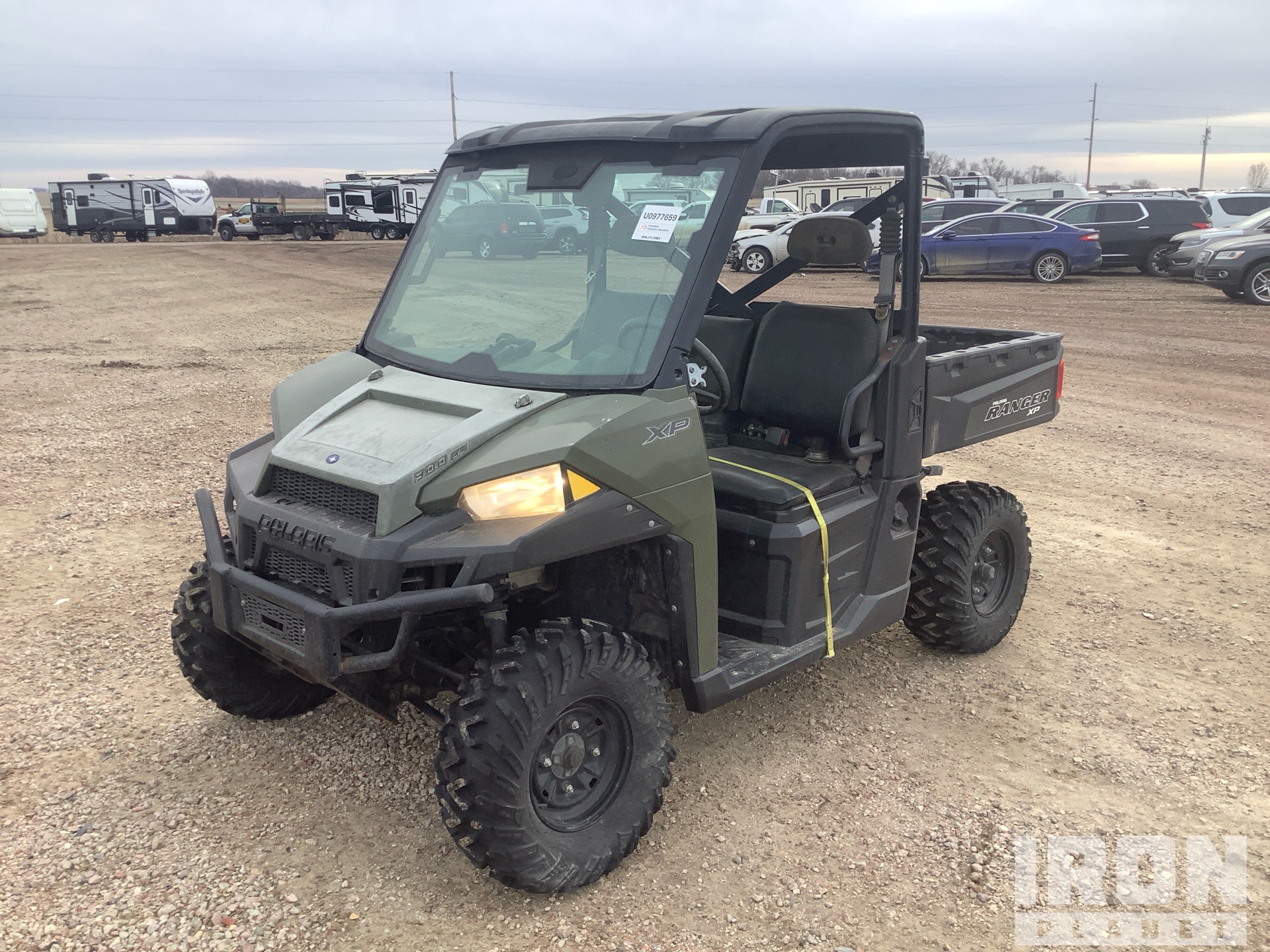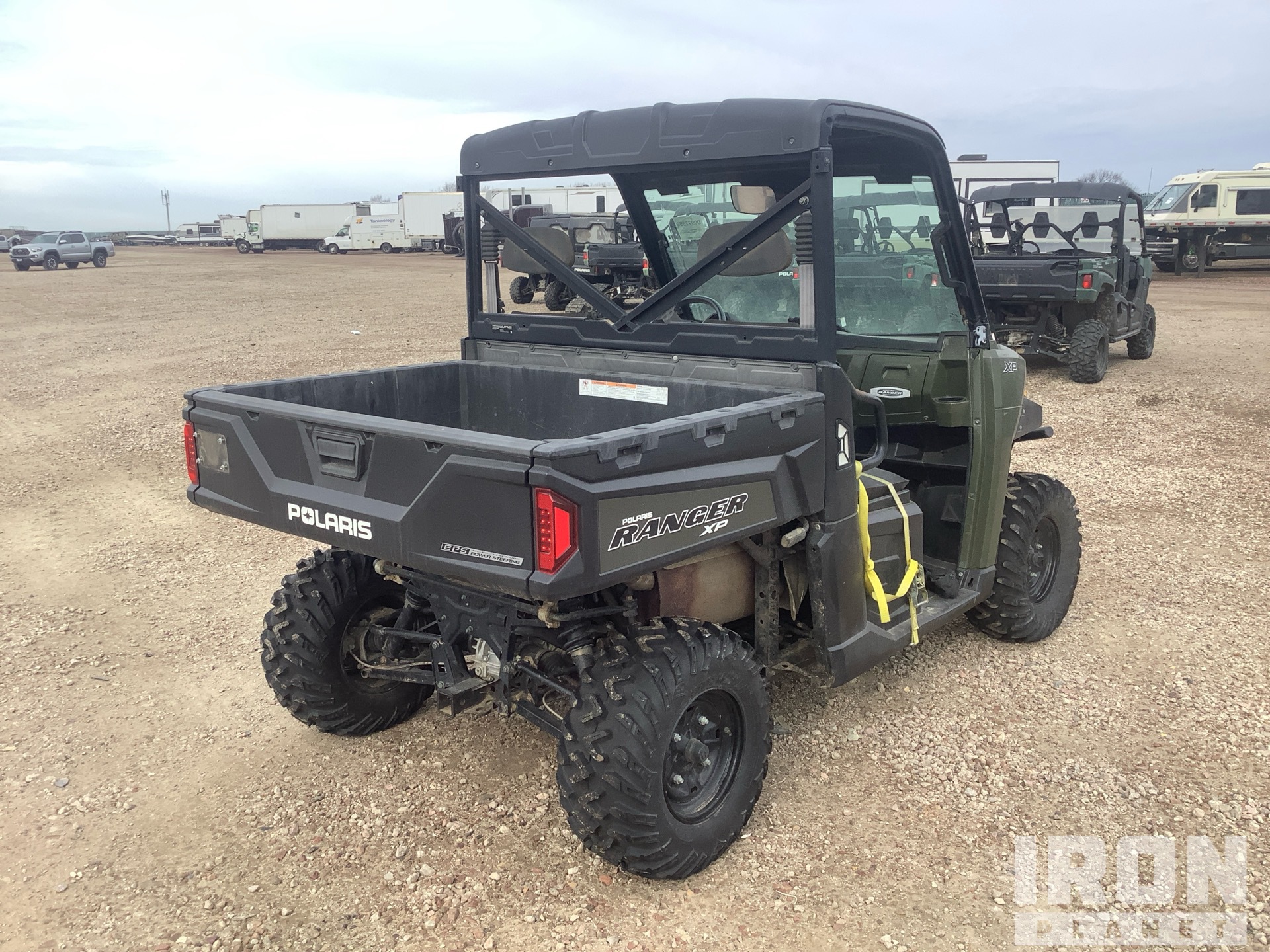Canopy, 2 Passenger, Windshield, Brush Guard, Hitch Receiver, Manual Dump Bed, Polaris 2 Cylinder 900 cc Gasoline Engine