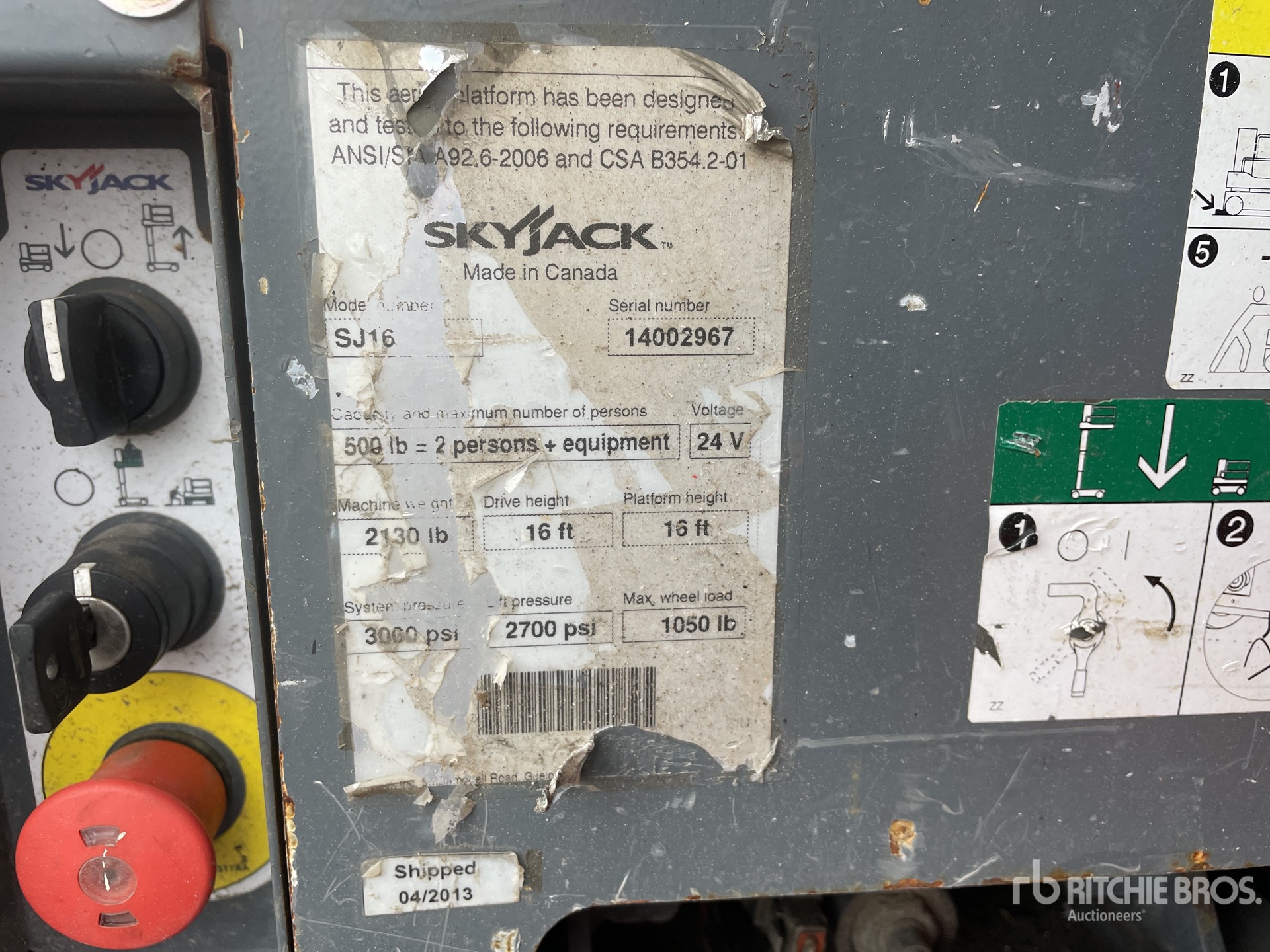 The detailed equipment information is limited in scope, and Ritchie Bros. Auctioneers has not inspected any aspects or components of the equipment other than those expressly set forth herein. Unless expressly stated, we make no representations or warranties, express or implied, concerning the equipment or its components, including without limitation any representations or warranties concerning functionality, conformity or compliance with any safety standard or requirement of any applicable authority or regulatory body, fitness for any particular purpose, or merchantability. You are strongly advised to perform your own detailed inspection of the equipment prior to bidding.