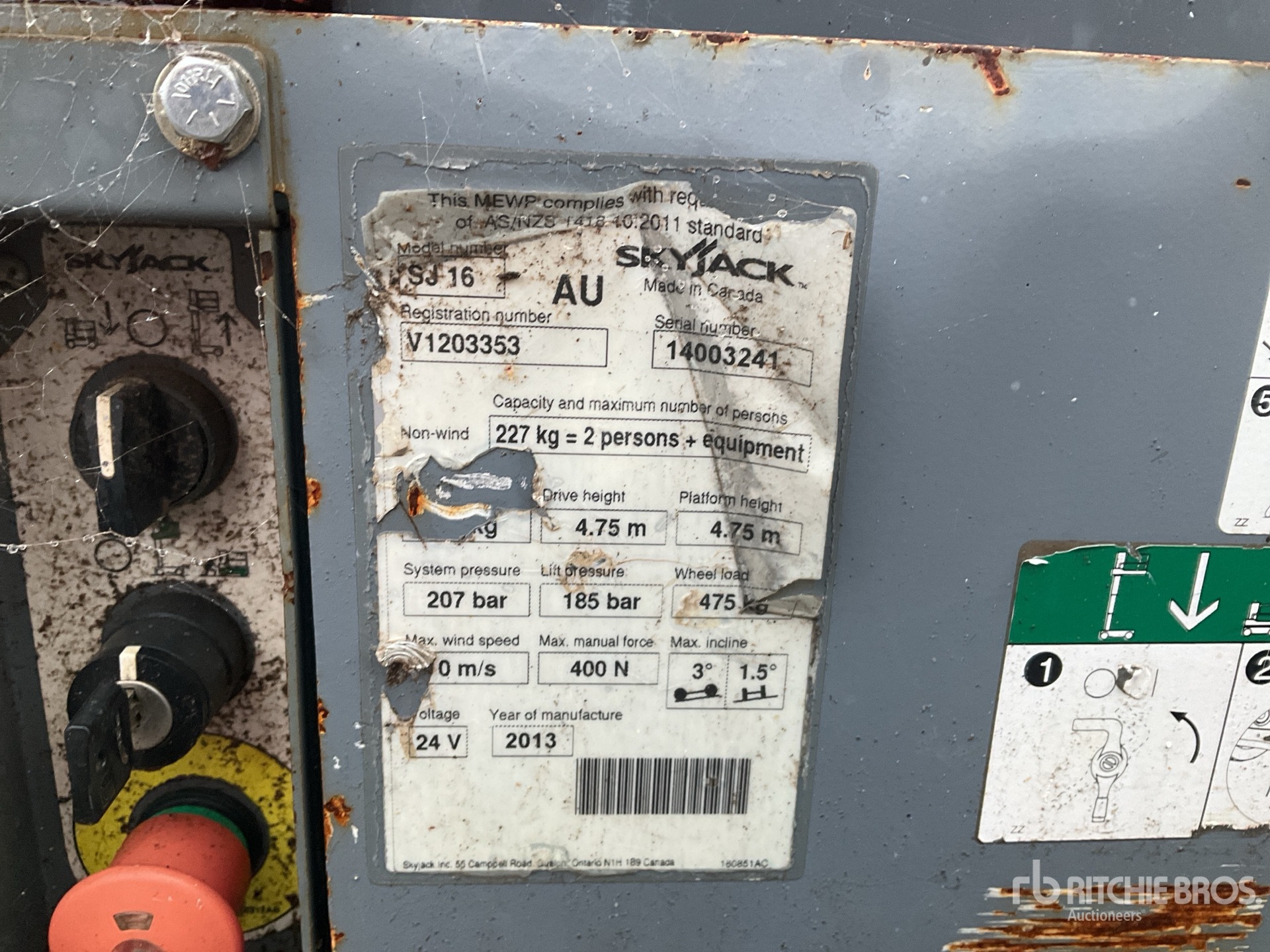 The detailed equipment information is limited in scope, and Ritchie Bros. Auctioneers has not inspected any aspects or components of the equipment other than those expressly set forth herein. Unless expressly stated, we make no representations or warranties, express or implied, concerning the equipment or its components, including without limitation any representations or warranties concerning functionality, conformity or compliance with any safety standard or requirement of any applicable authority or regulatory body, fitness for any particular purpose, or merchantability. You are strongly advised to perform your own detailed inspection of the equipment prior to bidding.