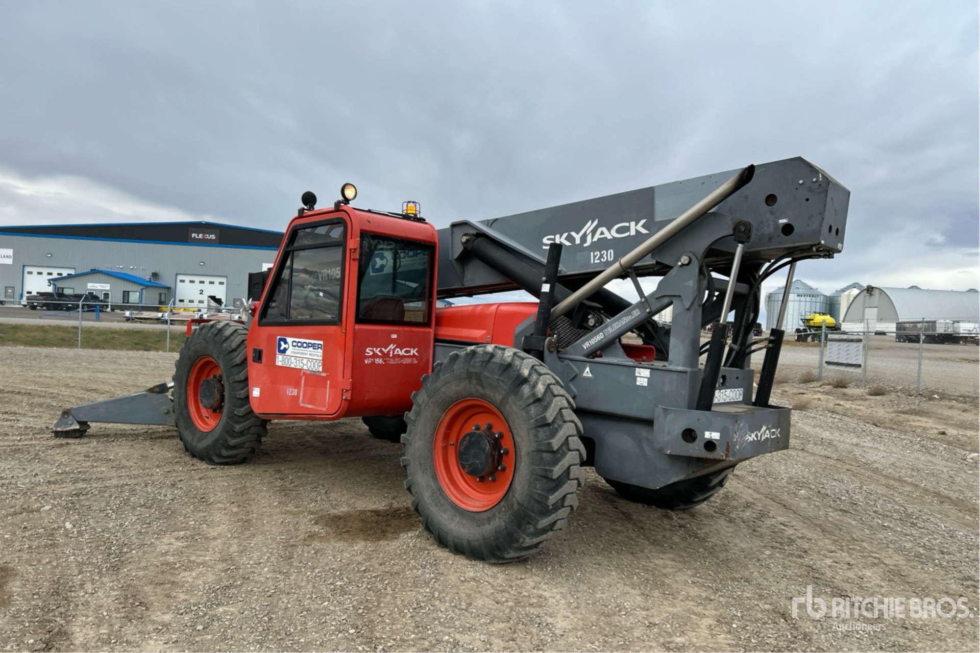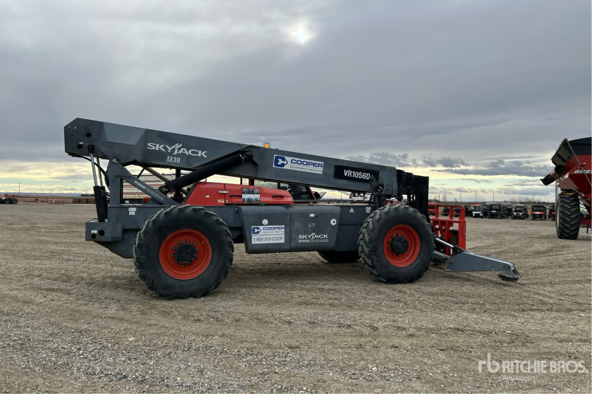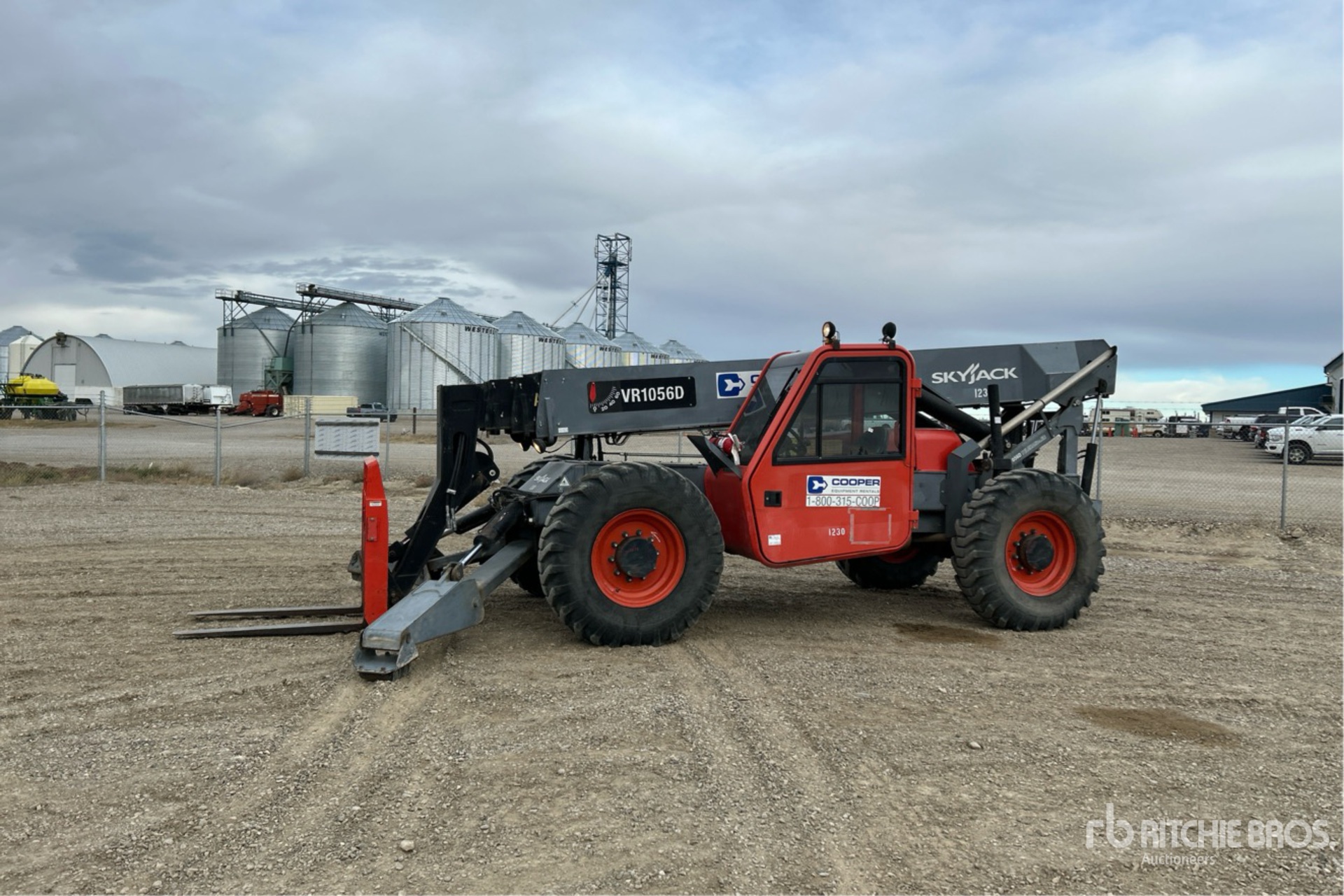 Enclosed Cab, 56 ft Max Lift Height, 10000 lb Max Lift Capacity, 48 in Forks, Manual Coupler, Outriggers, Frame Leveling, Auxiliary Hydraulic Plumbing, 14.00-24 Tires