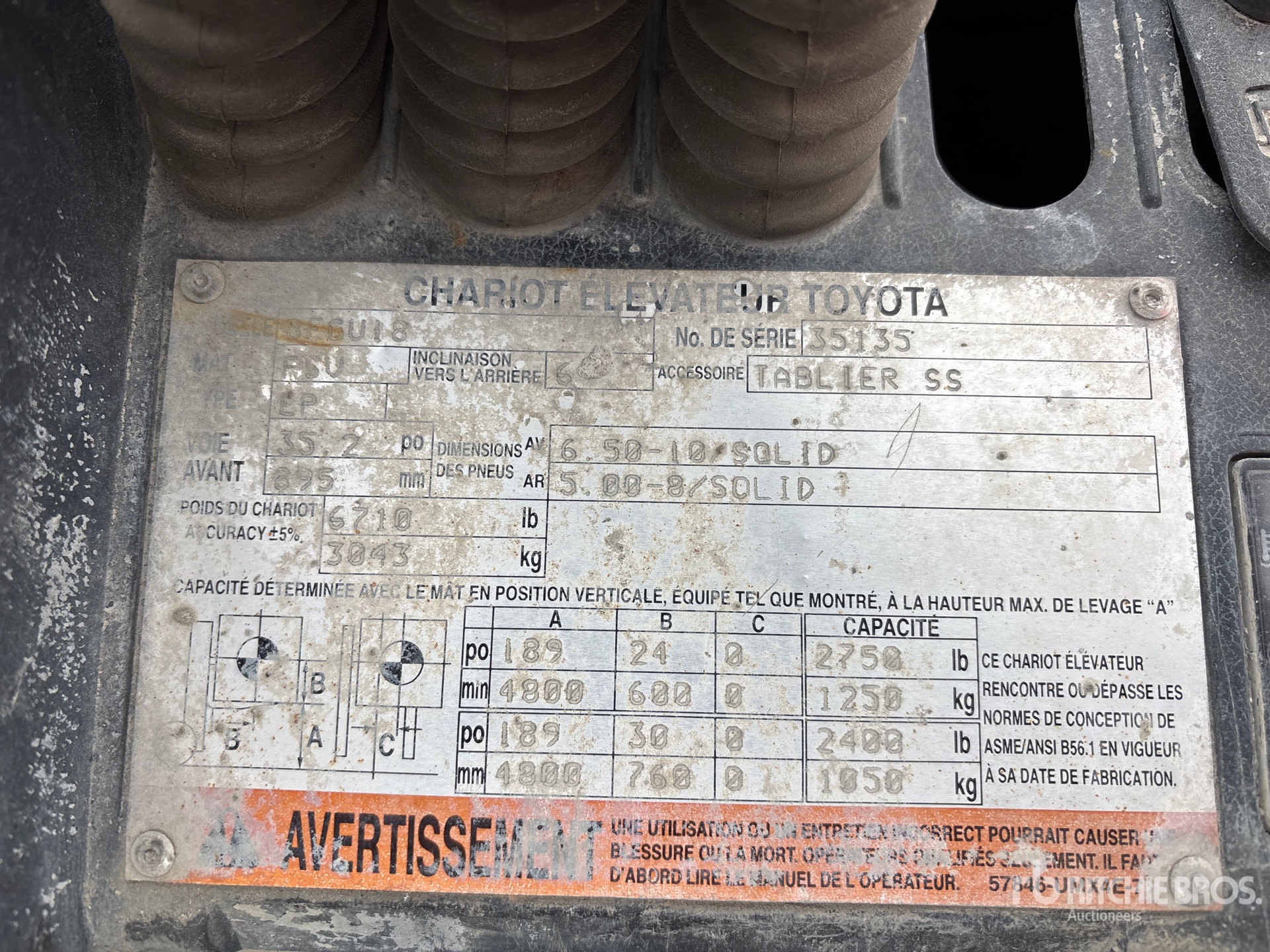 The detailed equipment information is limited in scope, and Ritchie Bros. Auctioneers has not inspected any aspects or components of the equipment other than those expressly set forth herein. Unless expressly stated, we make no representations or warranties, express or implied, concerning the equipment or its components, including without limitation any representations or warranties concerning functionality, conformity or compliance with any safety standard or requirement of any applicable authority or regulatory body, fitness for any particular purpose, or merchantability. You are strongly advised to perform your own detailed inspection of the equipment prior to bidding.