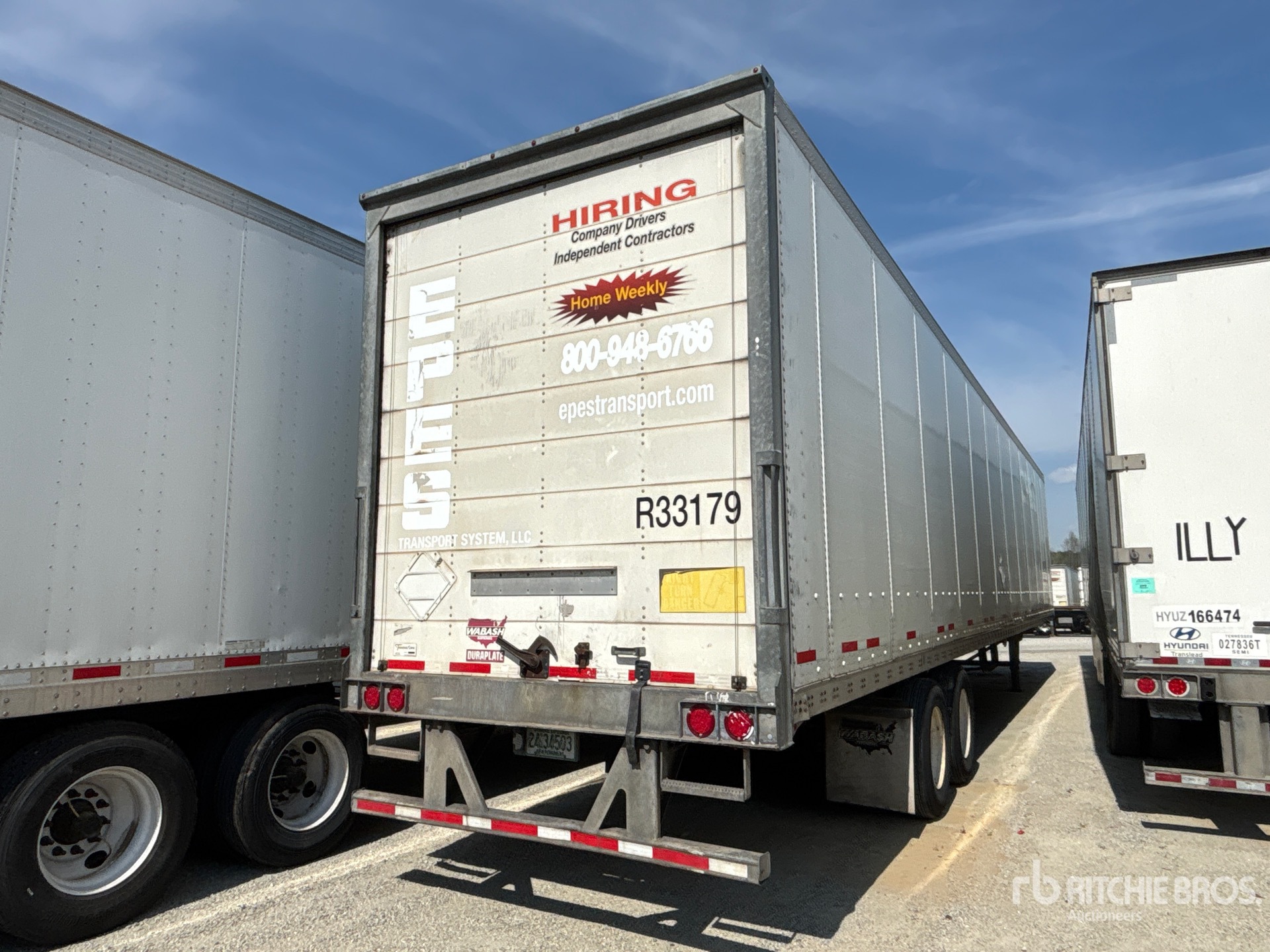 Located in Lane 28 Spot 16, Air Ride Sliding Suspension, Hardwood Floor, Roll-Up Door, 295/75R22.5 Tires 68000 lb GVWR